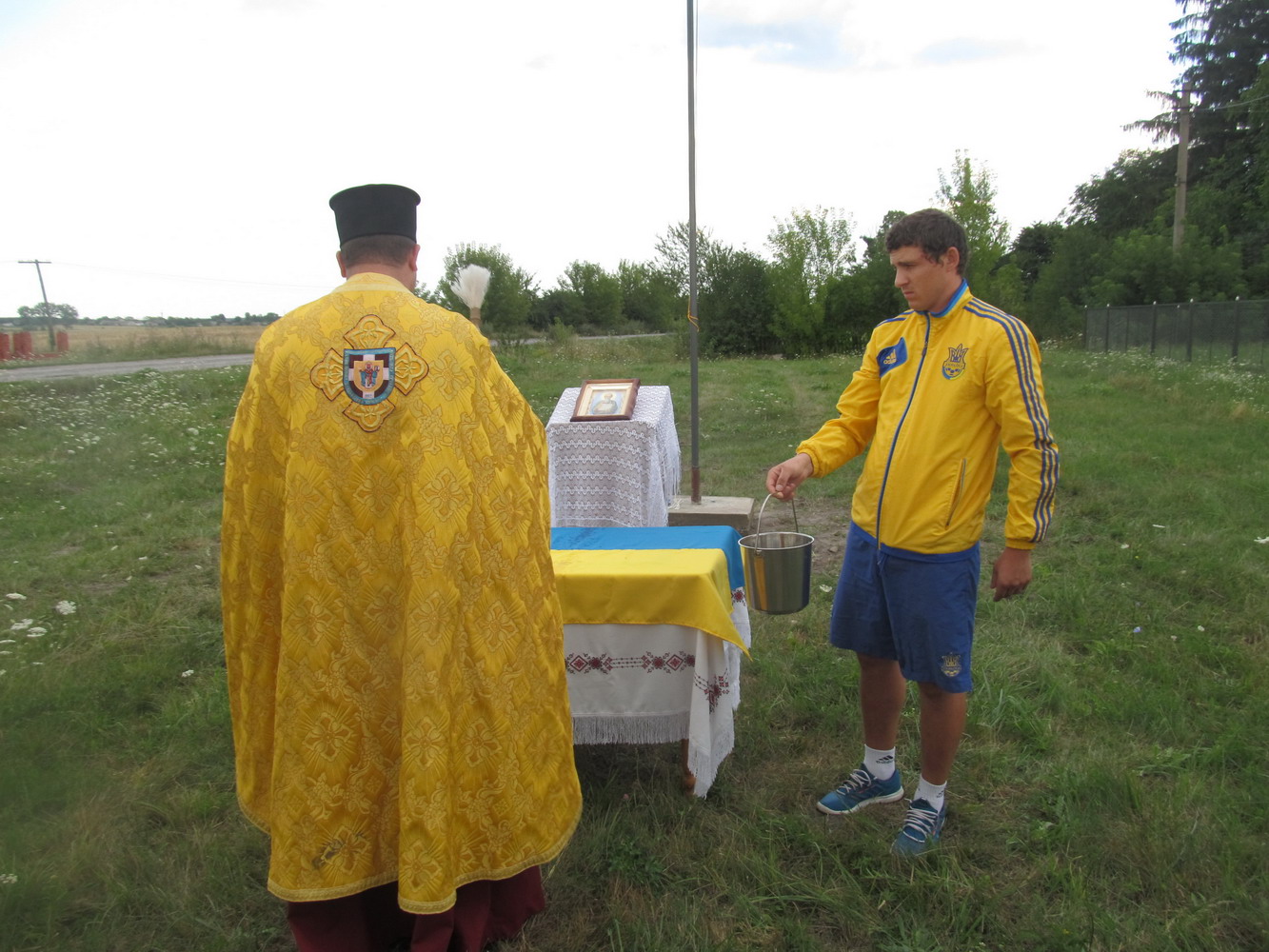 31 липня 2015 р., с. Охнівка Володимирського районного деканату. Освята державного прапора України. Світлини з архіву священика Бориса Наумчука.