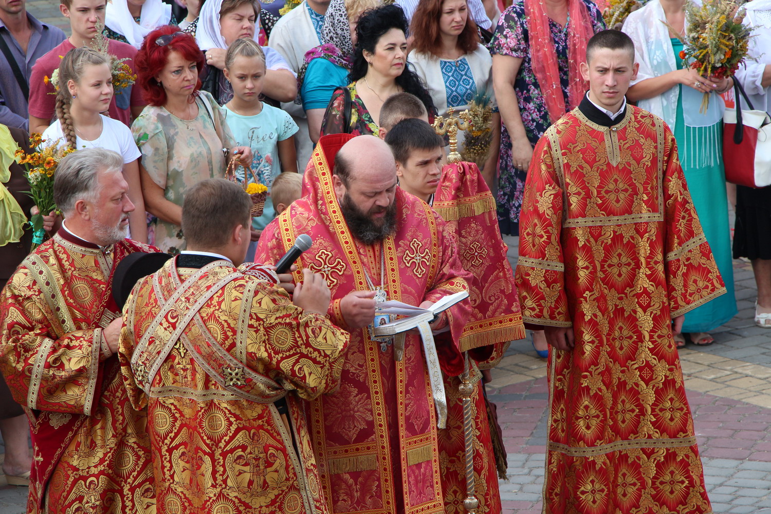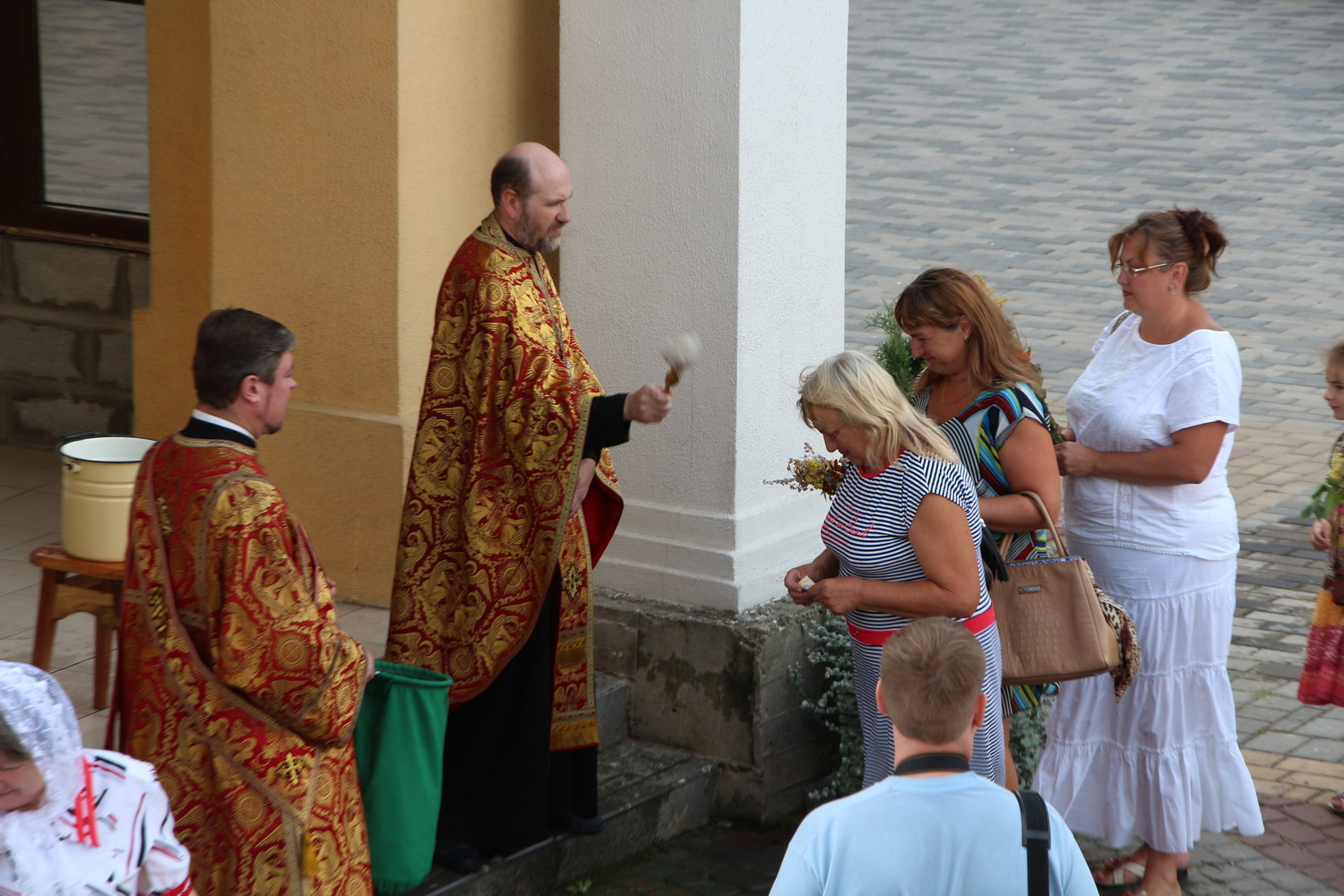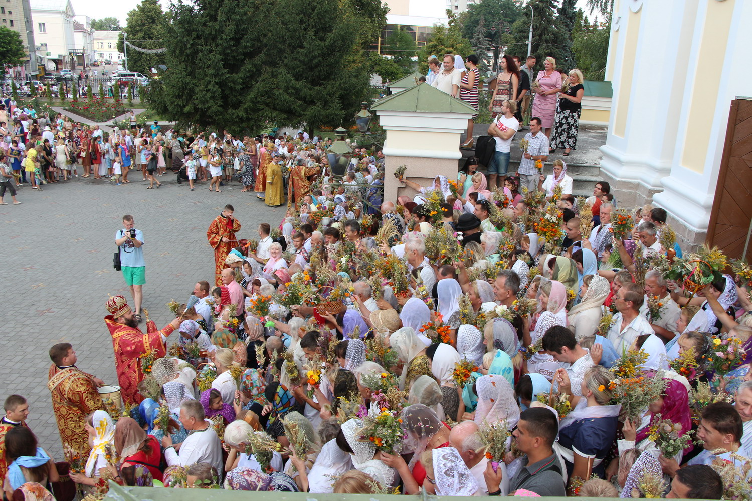 14 серпня 2015 р., Винесення хреста Господнього, Семи мучеників Маккавеєвих. Митрополит Луцький і Волинський Михаїл освячує зілля перед кафедральним собором Святої Трійці. Світлини інформаційної служби єпархії.