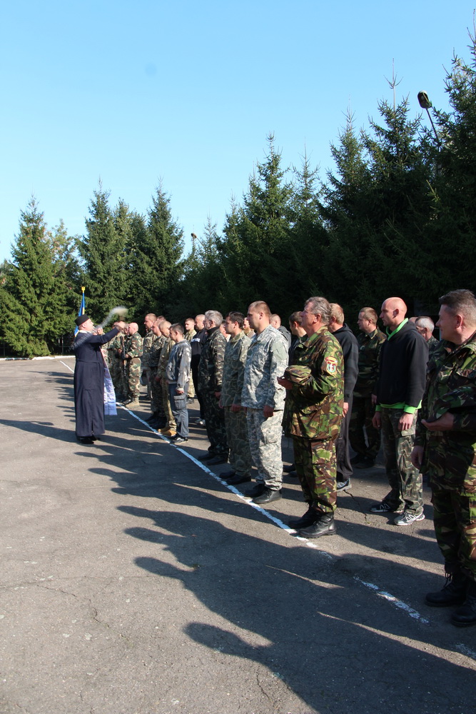 5 жовтня 2015 р. Молебень перед початком усякого доброго діла під час відкриття занять з територіальної оборони на плацу Луцького об’єднаного міського військового комісаріату. Богослужіння очолює і слово виголошує віце-канцлер і старший капелан єпархії протоієрей Олександр Безкоровайний. Світлини інформаційної служби єпархії.