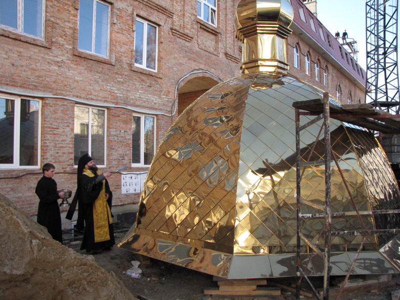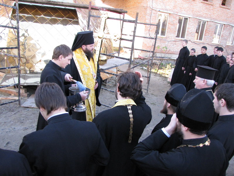 15 листопада 2010 р. архієпископ Луцький і Волинський Михаїл освятив купол і надбанний хрест для храму Всіх волинських святих, що в новому корпусі Волинської духовної семінарії. Світлина інформаційної служби єпархії.