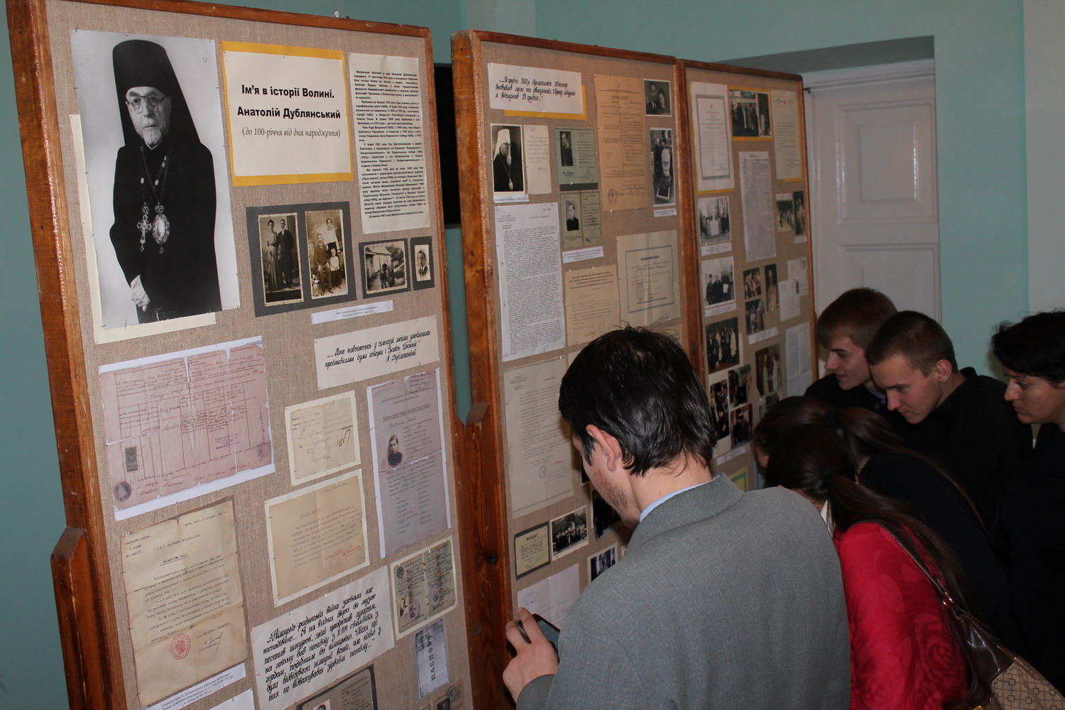 13 листопада 2012 р. Канцлер єпархії протоієрей Микола Цап, ректор Волинської православної богословської академії протоієрей Ігор Швець та її студенти – на вечорі-портреті митрополита УАПЦ Анатолія (Дублянського), приуроченому 100-літтю від дня його народження, що проходив у Волинському краєзнавчому музеї. Світлини Леоніда Максимова.
