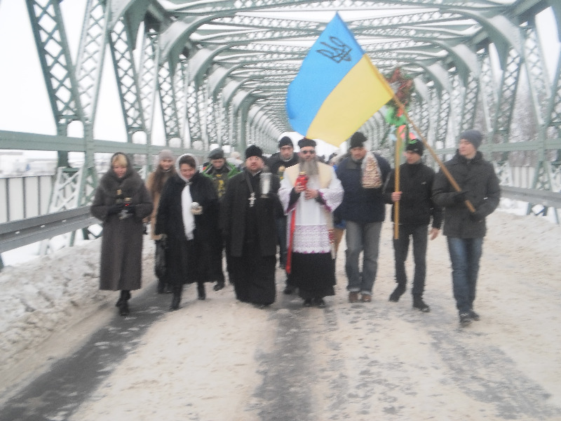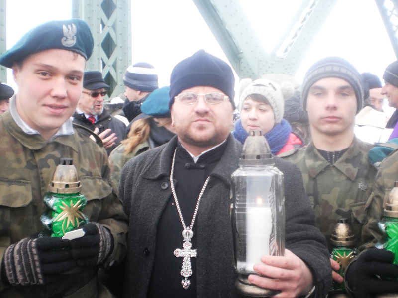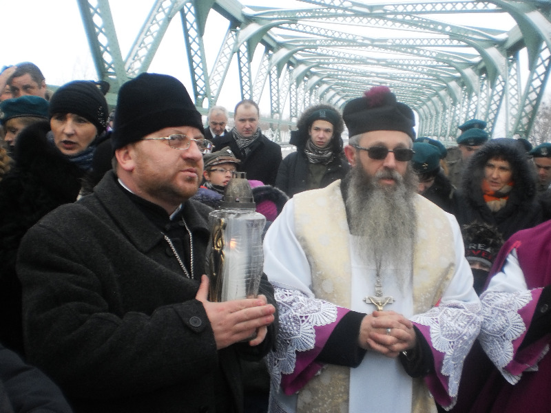 20 грудня 2012 р. Клірик володимирського собору Різдва Христового протоієрей Ігор Бігун приймає віфлеємський вогонь на міжнародному автопереході «Устилуг–Зосин». Світлини з архіву священика.