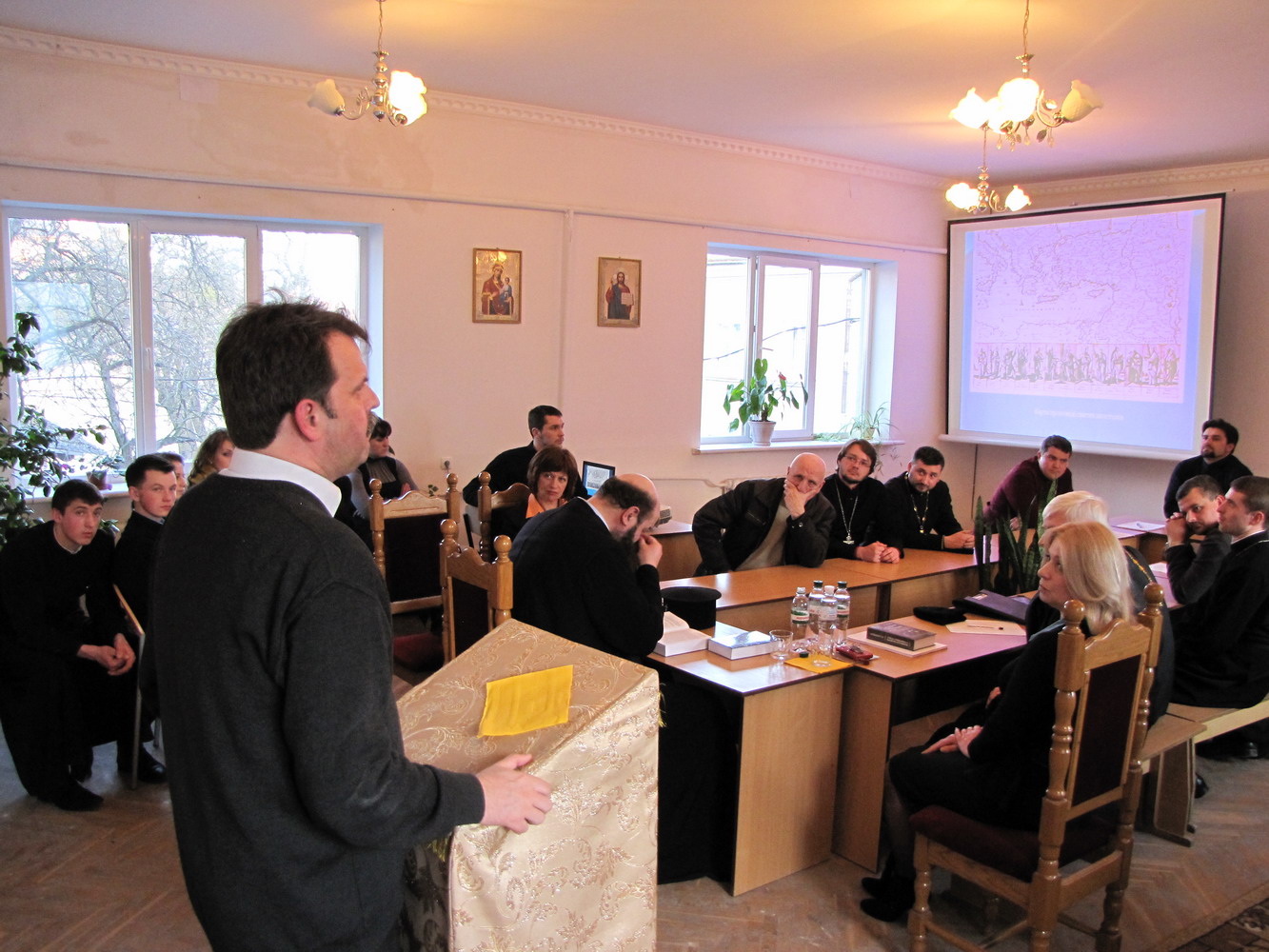 11 квітня 2013 р. Відомий історик Михайло Довбищенко – у Волинській православній богословській академії під час круглого стілу на тему «Віхи історії в процесі християнізації Русі-України». Світлини інформаційної служби єпархії.