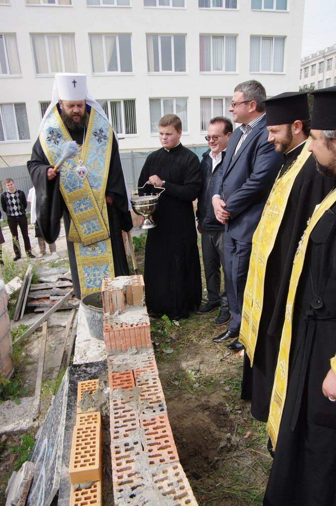11 вересня 2013 р. Освята наріжного каменя і закладання капсули у фундамент майбутнього храму Святої Софії – Премудрості Божої Східноєвропейського національного університету імені Лесі Українки (навпроти його бібліотеки). Відправу очолює митрополит Луцький і Волинський Михаїл. Світлини Ігоря Сацика.