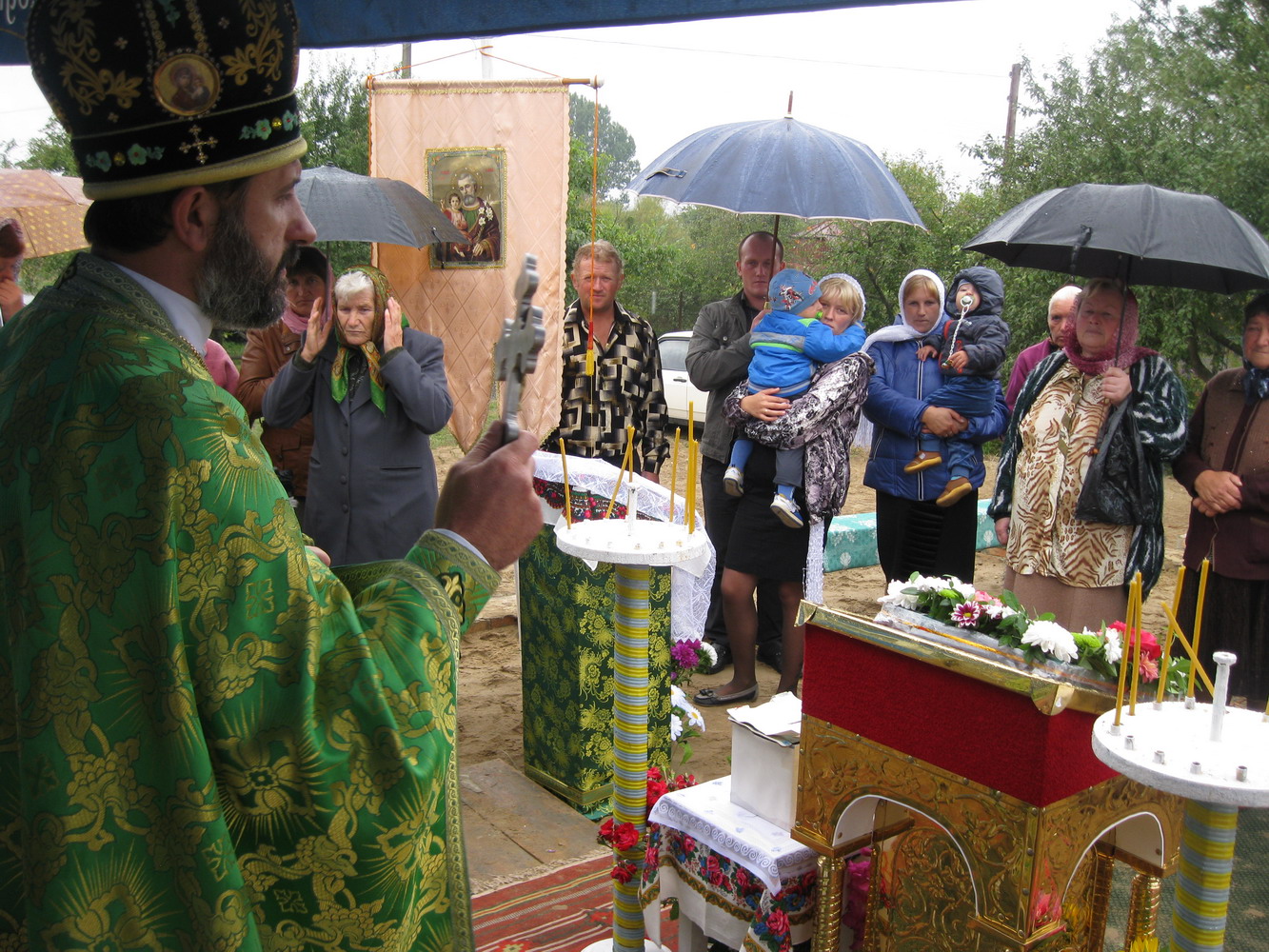 10 вересня 2013 р. Божественна Літургія і чин освяти наріжного каменю майбутнього храму Преподобного Іова Почаївського в с. Черкаси Ковельського районного деканату. Богослужіння очолює декан протоієрей Іван Бонис. Світлини з архіву священика Матвія Олійника.