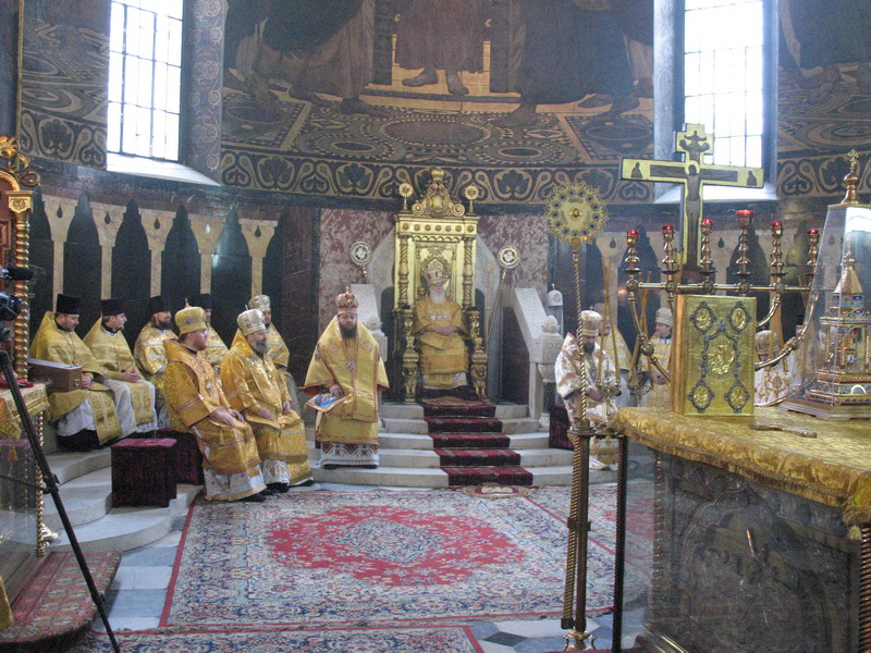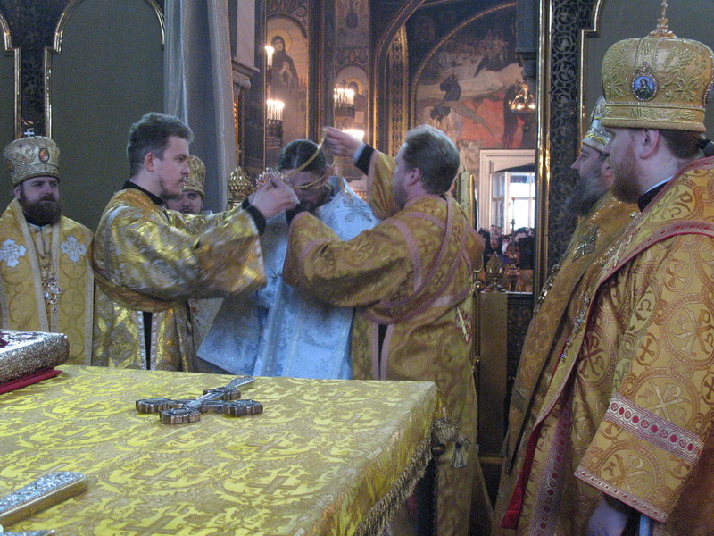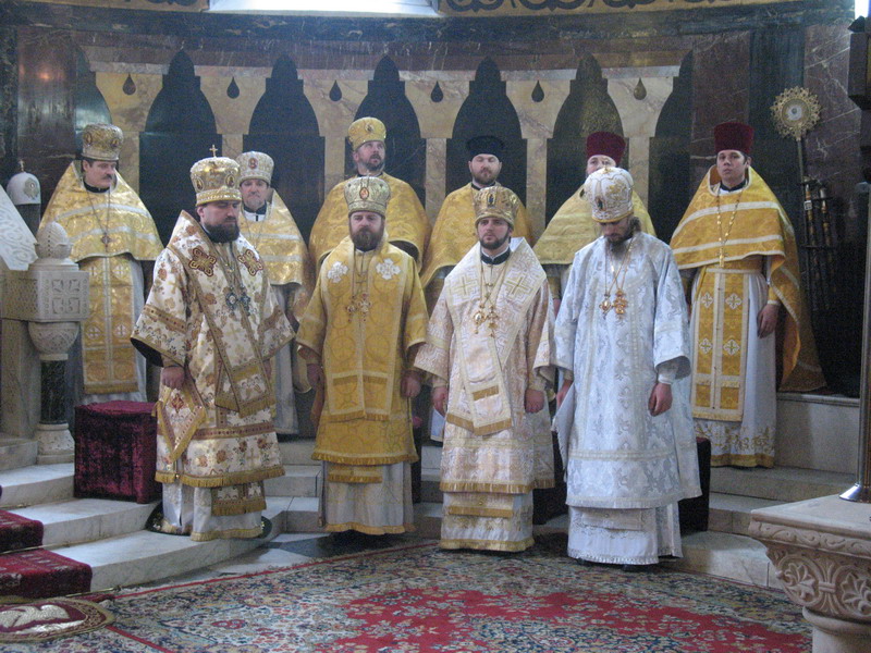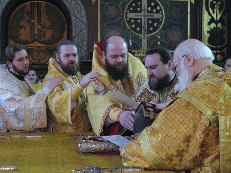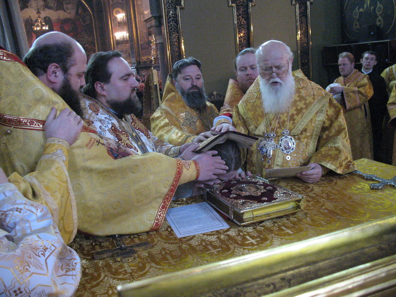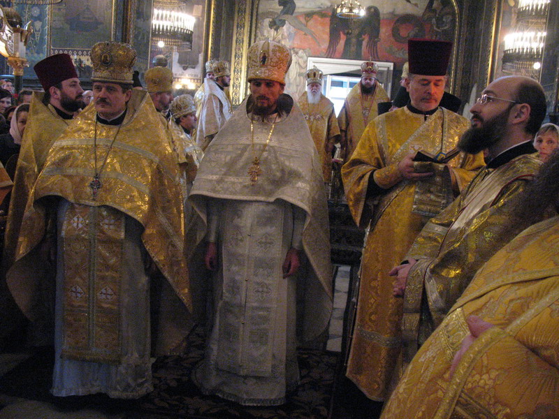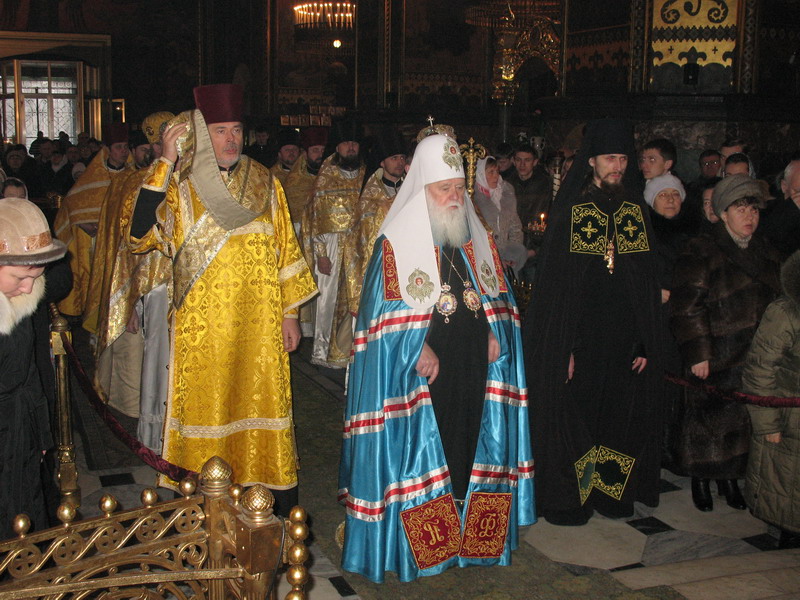 1 лютого 2009 р. У вівтарі Володимирського собору Києва під час Божественної Літургії, за якою Патріарх Філарет, архієпископ Михаїл та інші ієрархи висвятили архімандрита Марка (Левківа) (справа, у білих ризах) на єпископа Кіровоградського і Голованівського. Світлина ієромонаха Якова (Мільяна)