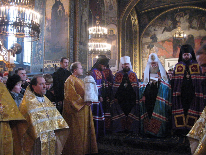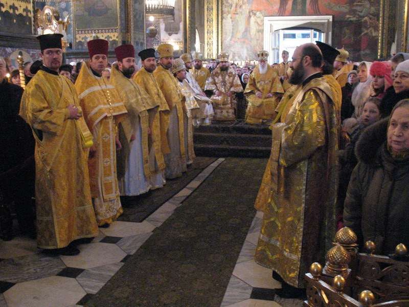 1 лютого 2009 р. Початок Божественної Літургії у Володимирському соборі Києва. Очолює Богослужіння Патріарх Київський і всієї Руси-України Філарет. Справа від Святійшого – архімандрит Марк (Левків), якого під час цієї відправи висвятять на єпископа Кіровоградського і Голованівського. Світлина ієромонаха Якова (Мільяна)