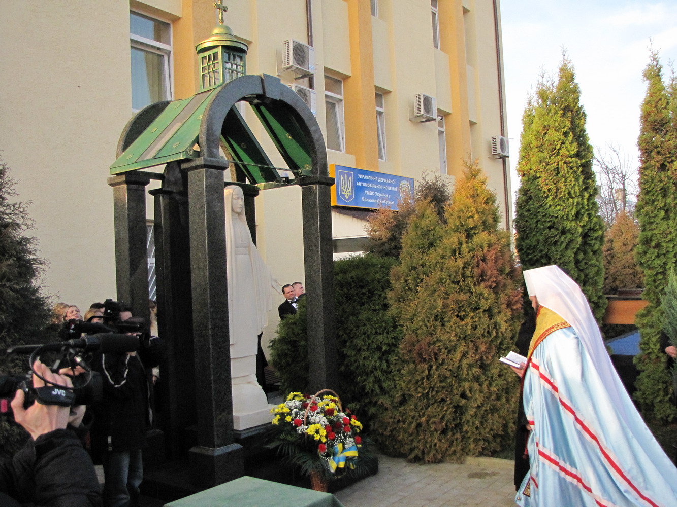 21 листопада 2013 р. Митрополит Луцький і Волинський Михаїл освячує статую Божої Матері на території управління Державтоінспекції УМВС України у Волинській області. Світлини інформаційної служби єпархії.
