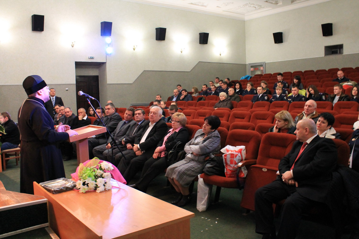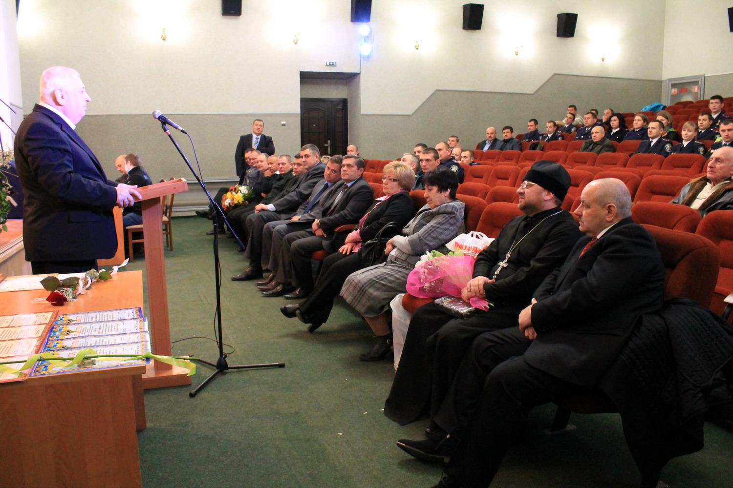 20 грудня 2013 р. Помічник володимирського міського декана протоієрей Ігор Бігун під час урочистостей з нагоди Дня міліції, що відбулися в Культурно-мистецькому центрі райцентру. Світлини з архіву священика.