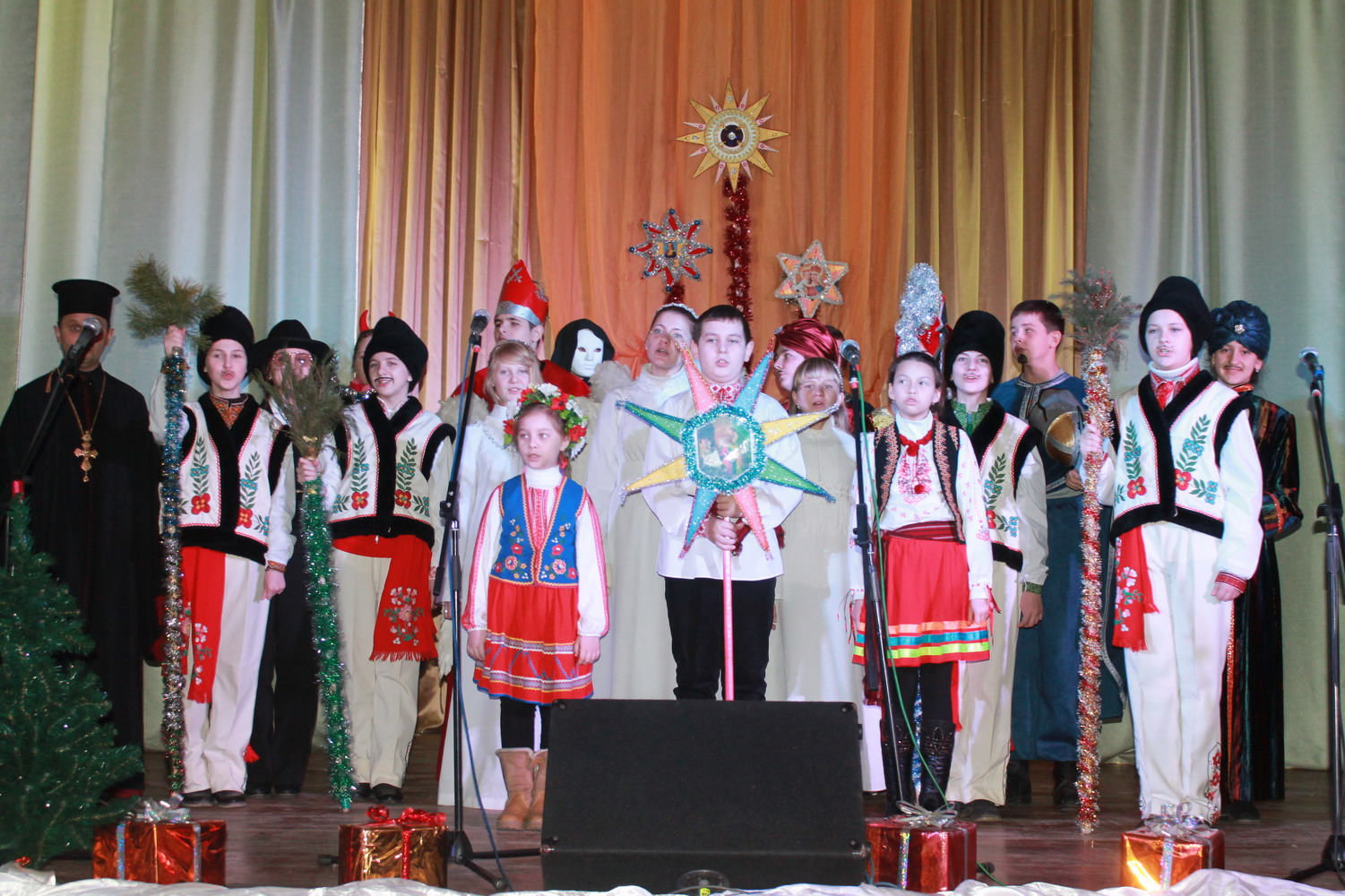13 січня 2014 р. Вертеп молодіжної школи володимирської парафії Мучениць Віри, Надії, Любові та Софії (директор протоієрей Євген Рябець) під час концерту «З колядою в серці» в Культурно-мистецькому центрі ім. Т. Шевченка у Володимирі. Світлини Іоанни Рябець.