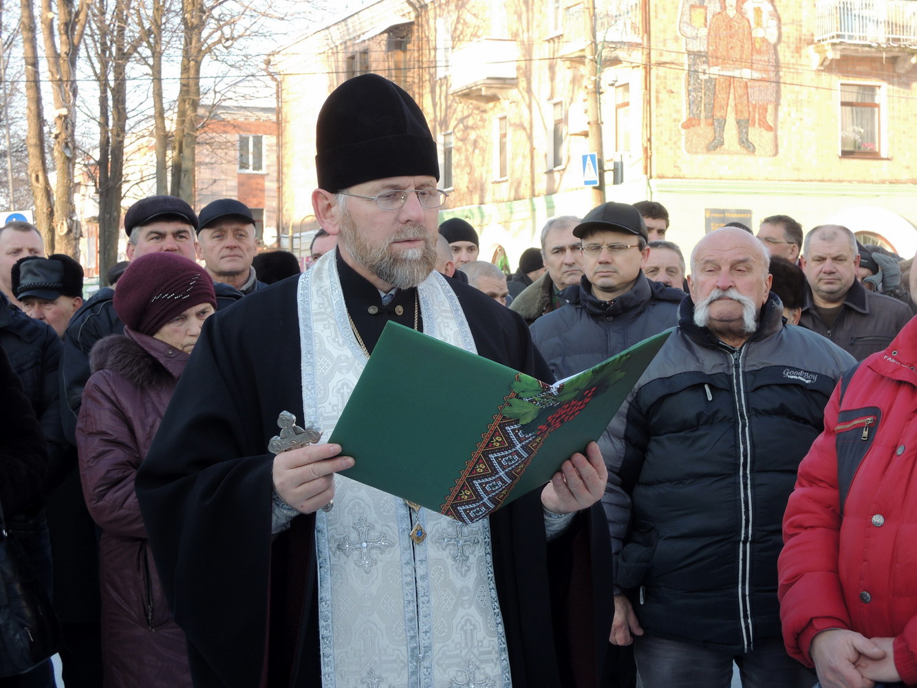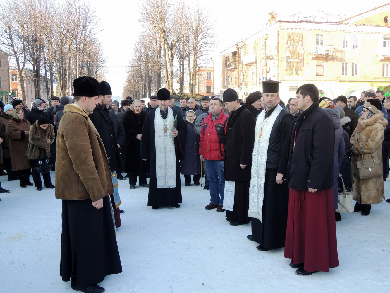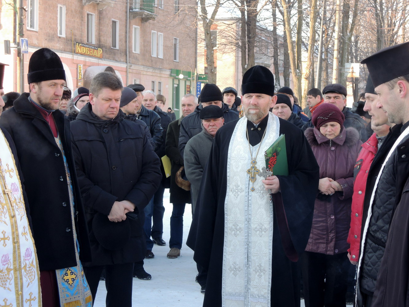 23 січня 2014 року. Панахида у Нововолинську за померлими під час сутичок на вулиці Грушевського у Києві. Очолює нововолинський декан, настоятель собору Святого Духа протоієрей Стефан Фульмес. Світлини Владислава Фульмеса.