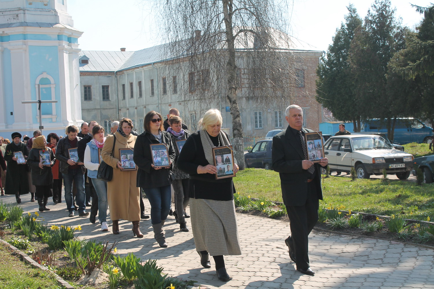 30 березня 2014 р. Хресний хід від собору різдва Христового до Площі Героїв у Володимирі. Заупокійна літія по загиблих героях «Небесної сотні» з нагоди 40-го дня із моменту трагічних подій у центрі Києва. Очолює міський декан протоієрей Юрій Пилипець. Світлини з архіву протоієрея Ігоря Бігуна.