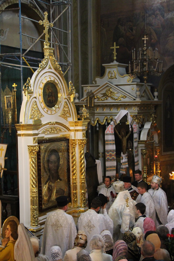 4 травня 2014 р. Митрополит Луцький і Волинський Михаїл освячує відреставрований кивот ікони Спасителя в кафедральному соборі Святої Трійці в Луцьку. Світлини інформаційної служби єпархії.