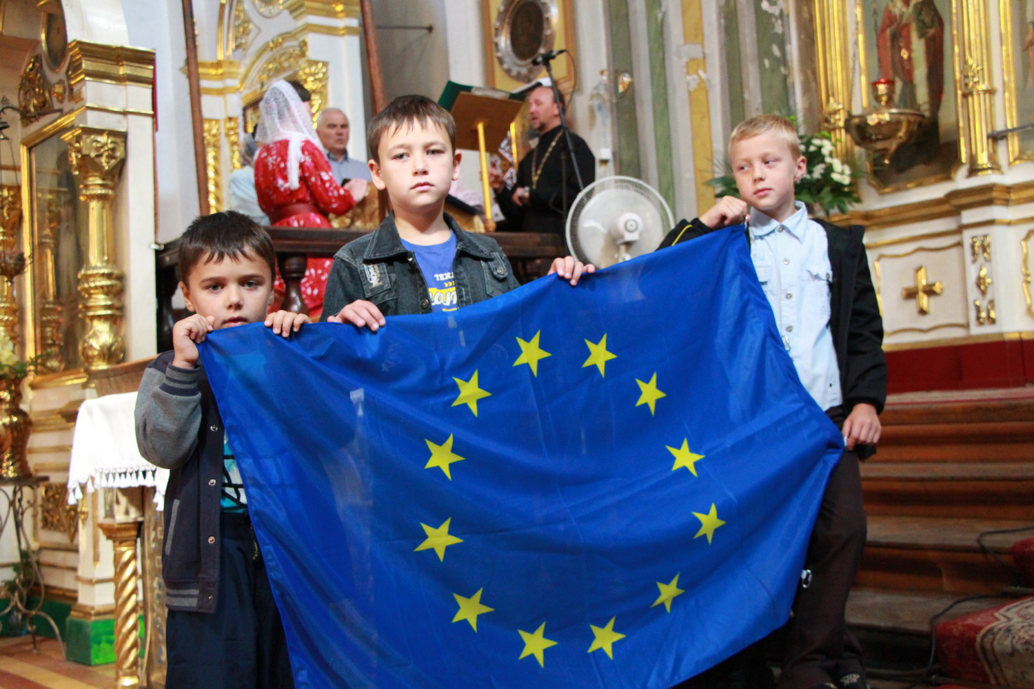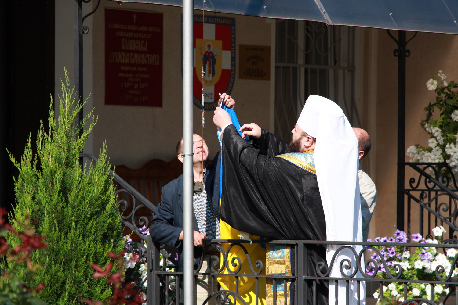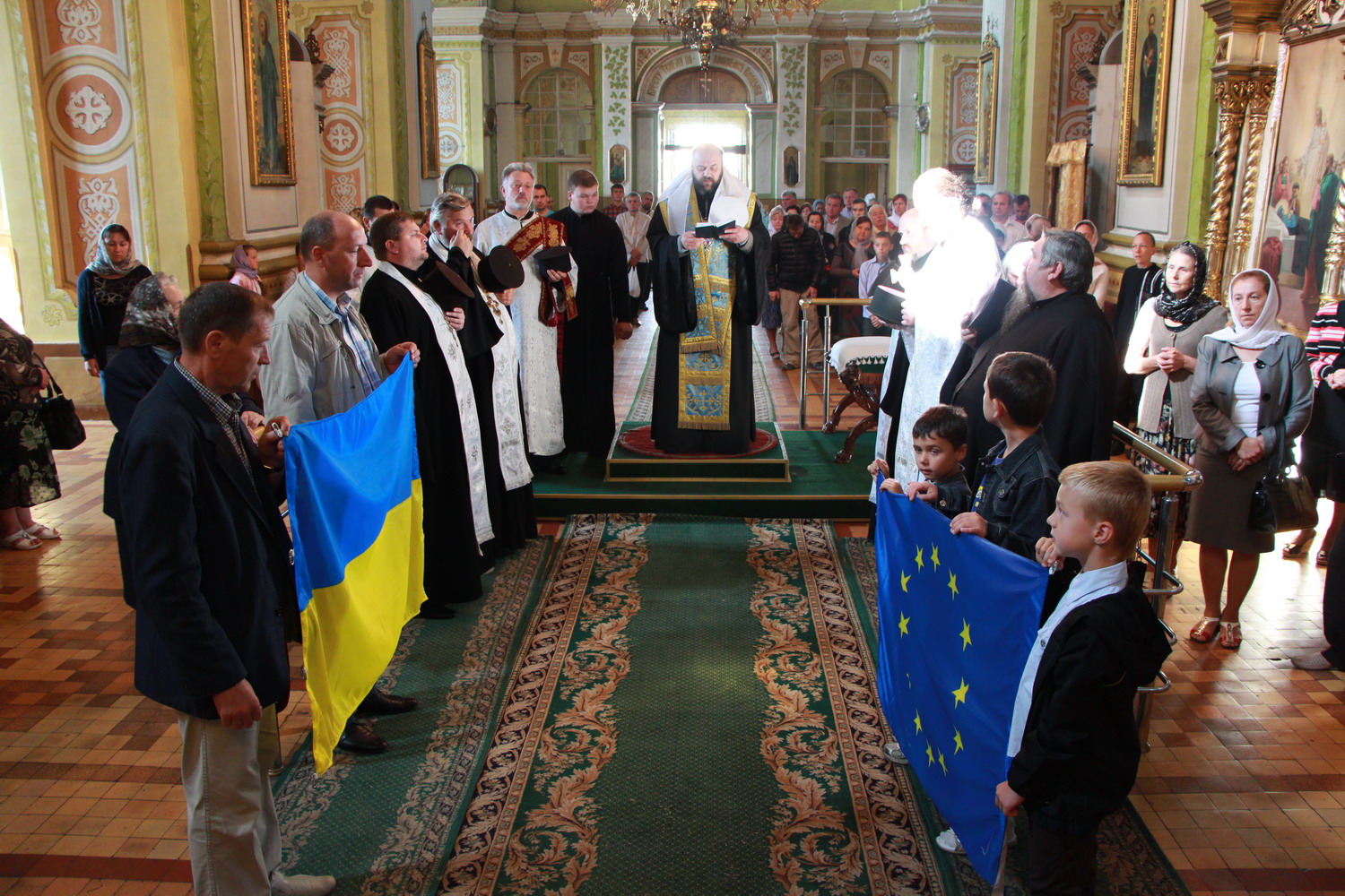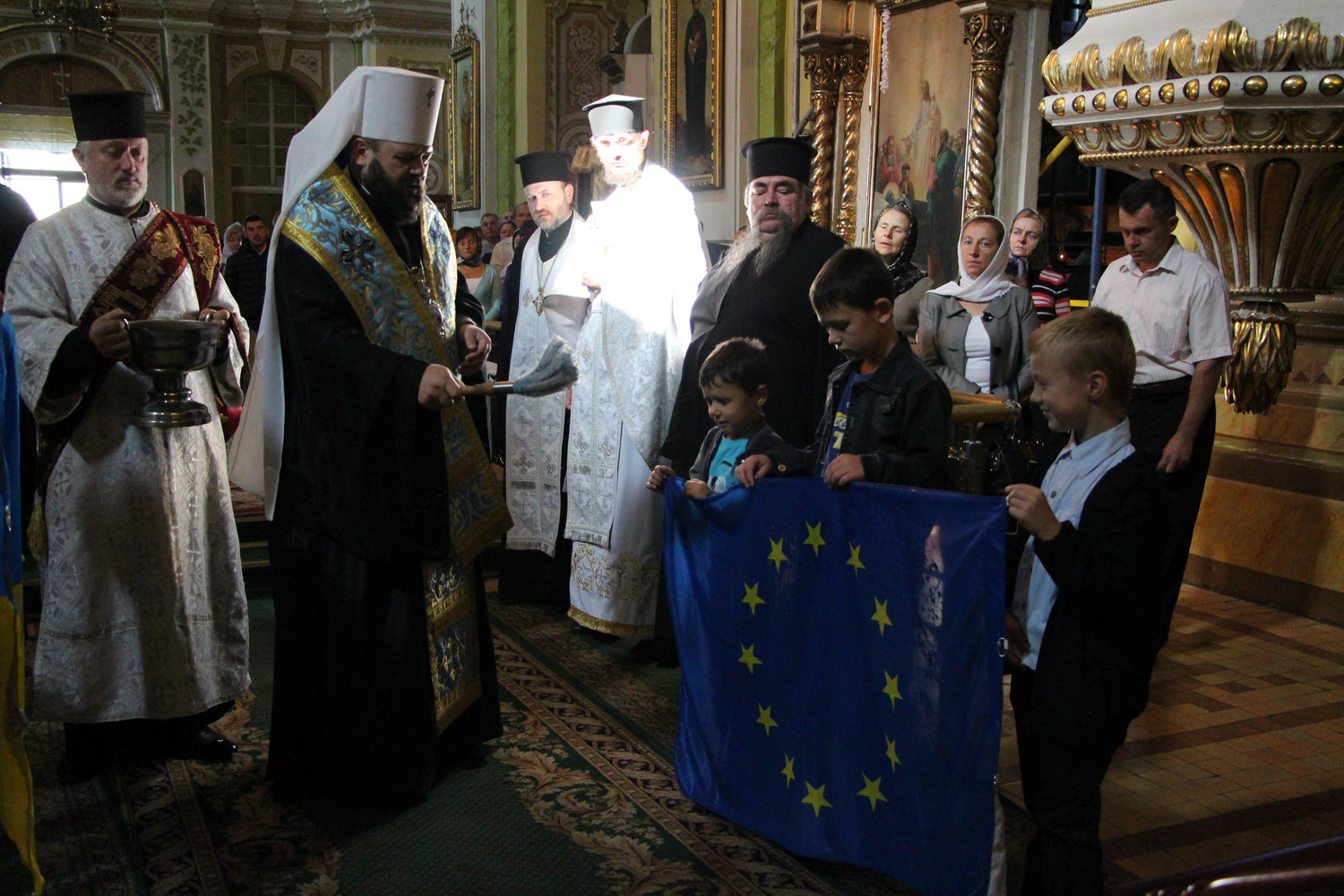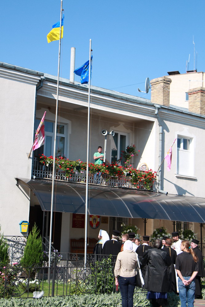 23 серпня 2014 р. Митрополит Луцький і Волинський Михаїл у кафедральному соборі Святої Трійці в Луцьку освячує Прапори України і Євросоюзу, які після цього піднімають на соборному майдані, перед духовною консисторією. Світлини інформаційної служби єпархії.