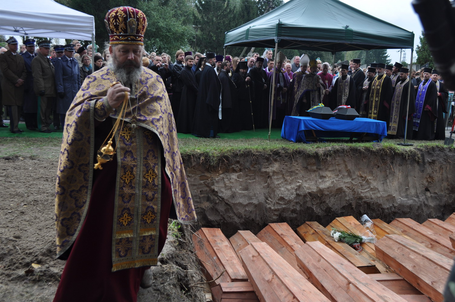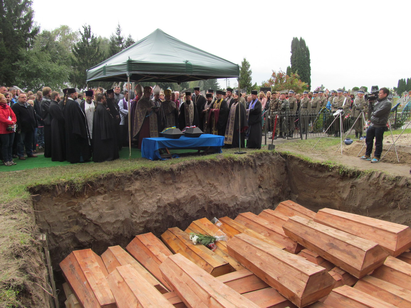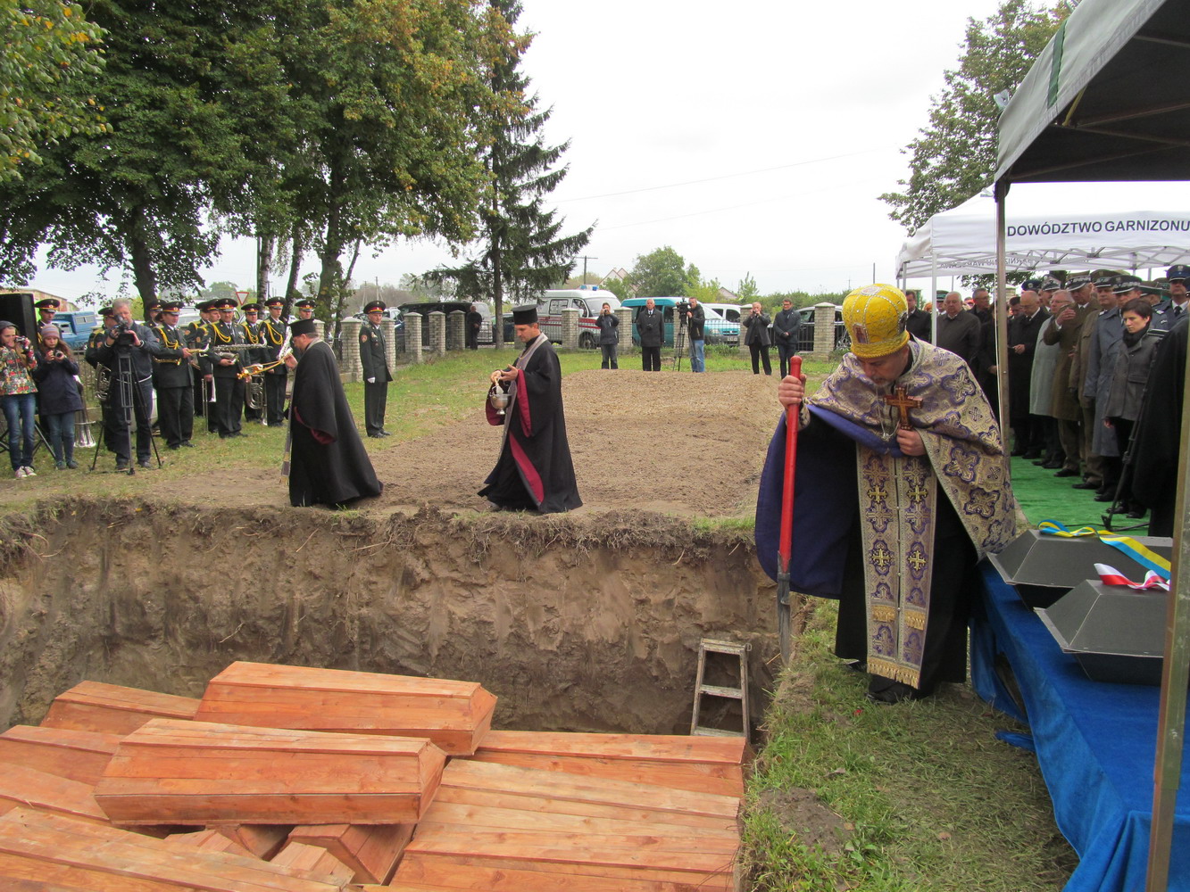 23 вересня 2014 р. Перепоховання на Федорівському кладовищі м. Володимира-Волинського останків жертв масових розстрілів НКВС. Заупокіну літію очолює помічник володимирського районного декана протоієрей Микола Гінайло. Світлини з архіву священика.