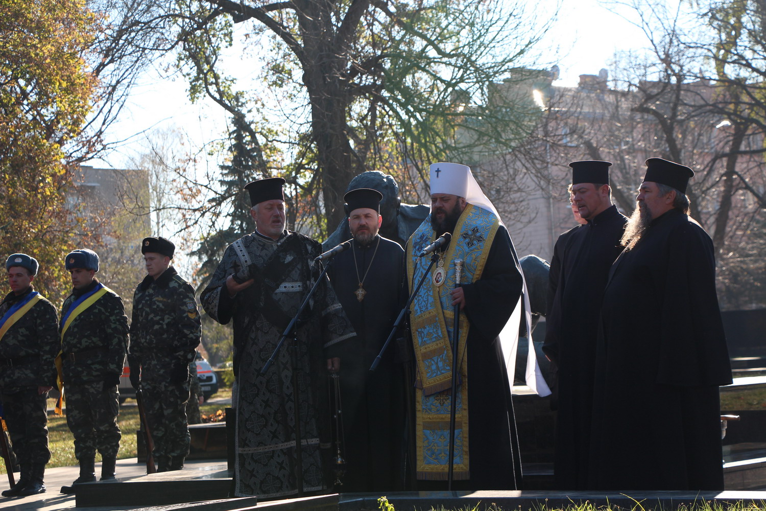 28 жовтня 2014 р. Заупокійна літія по загиблих у Другій світовій війні на Меморіальному комплексі вічної слави в Луцьку з нагоди 70-тої річниці з дня вигнання з України нацистських загарбників. Очолює митрополит Луцький і Волинський Михаїл. Світлини інформаційної служби єпархії.
