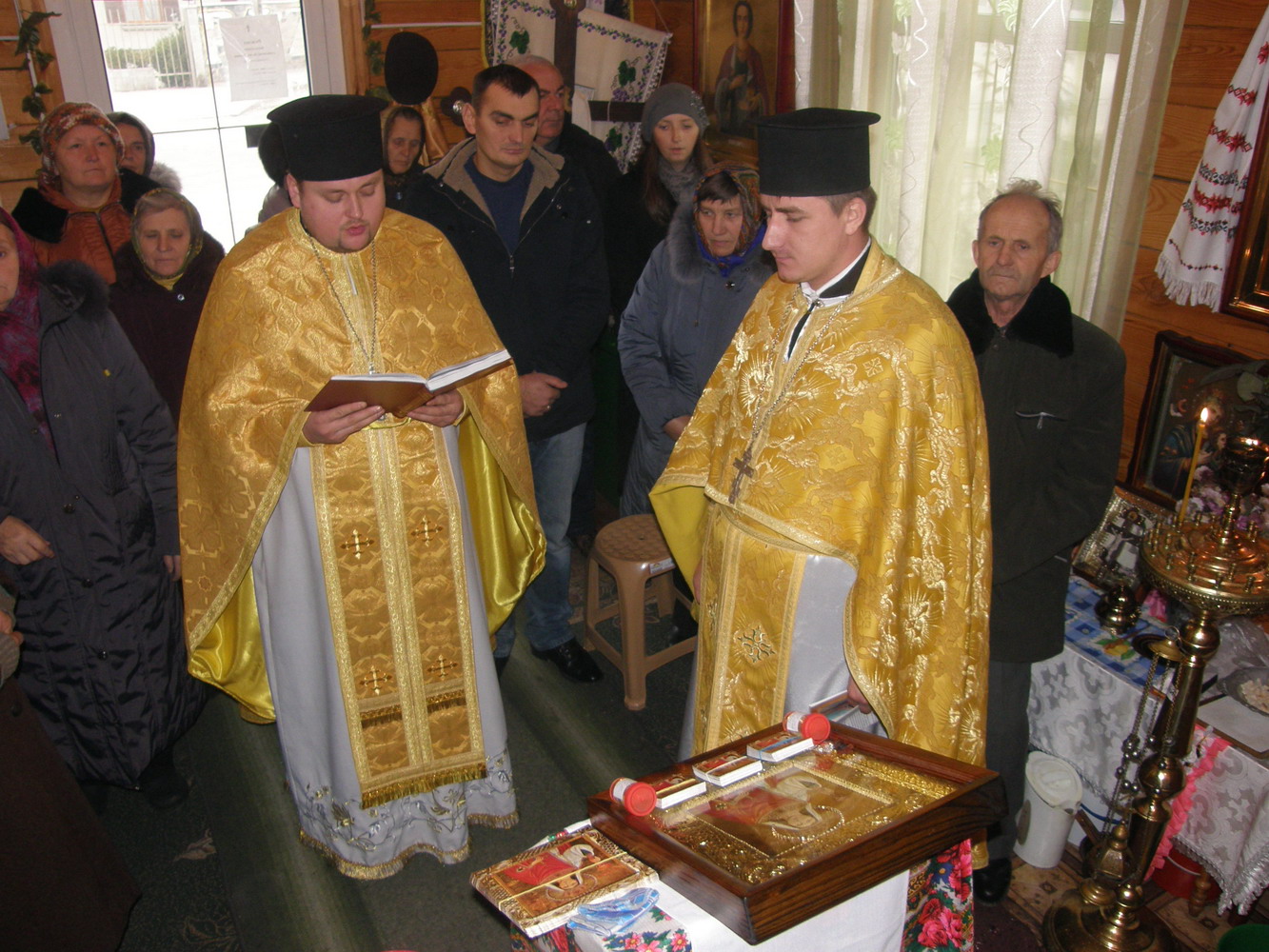 1 грудня 2014 р. Божественна Літургія та акафіст в храмі Архістратига Михаїла в селищі Шацьк перед іконою великомучениці Варвари з часткою мощей. Світлини з архіву священика Матвія Олійника.