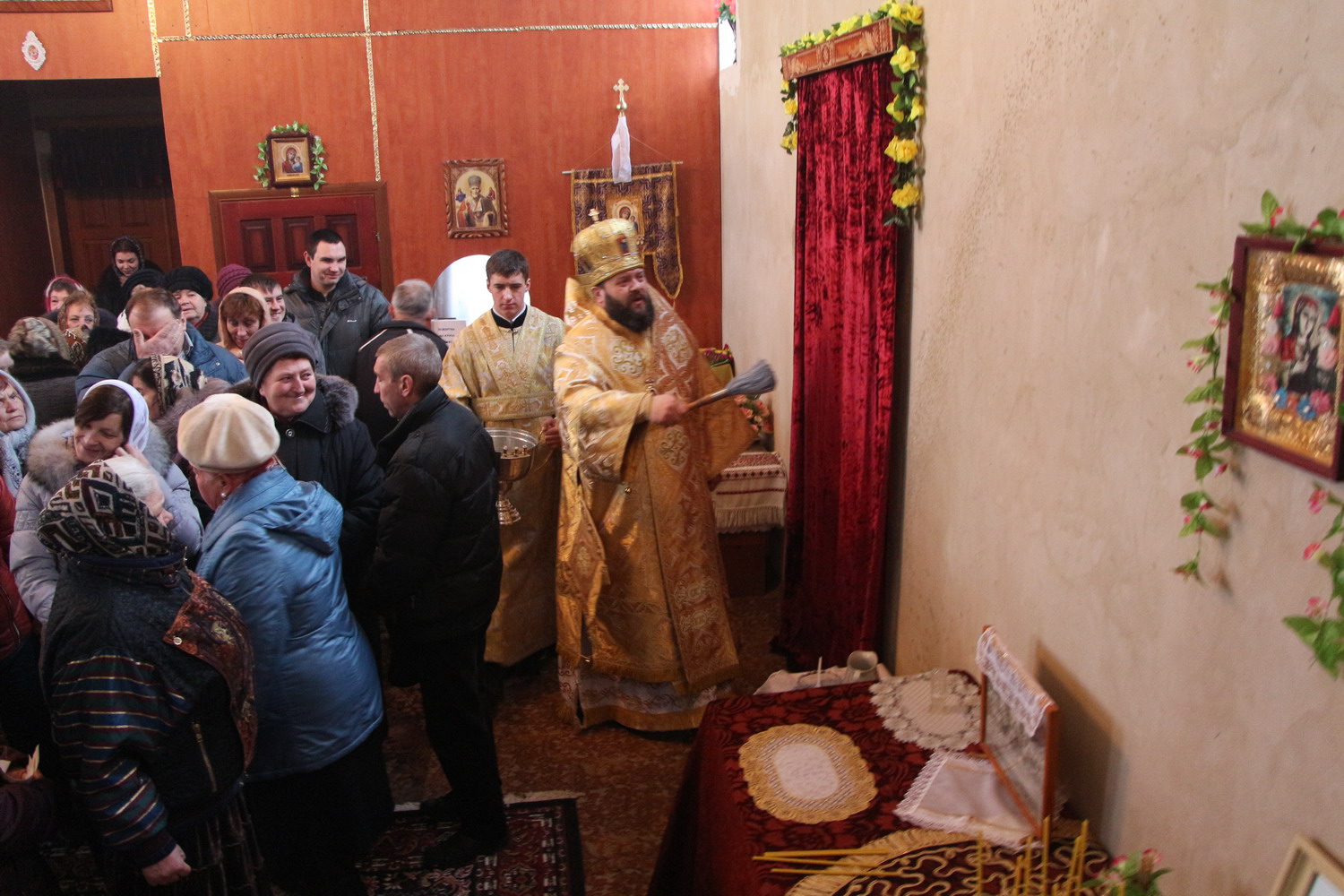 13 грудня 2014 р. Освята храму Апостола Андрія Превозваного та Божественна Літургія в ньому з нагоди престольного празника в с. Острівок Володимирського міського деканату. Свято очолює митрополит Луцький і Волинський Михаїл. Світлини інформаційної служби єпархії.