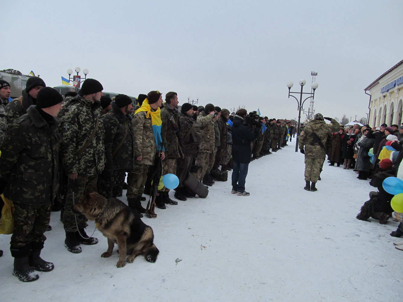 29 грудня 2014 р. Зустріч бійців батальйону територіальної оборони «Волинь», які приїхали на ротацію на залізничному вокзалі Володимира-Волинського за участю місцевого духовенства. Світлини з архіву протоієрея Миколи Гінайла.