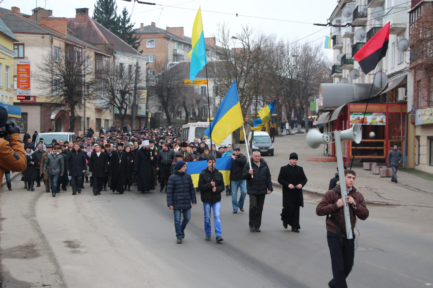 18 січня 2015 р. Марш солідарності «Я – Волноваха» у Луцьку, організований через загибель мирного населення 13 січня внаслідок обстрілу терористами рейсового автобуса під Волновахою на Донбасі. Світлини інформаційної служби єпархії.