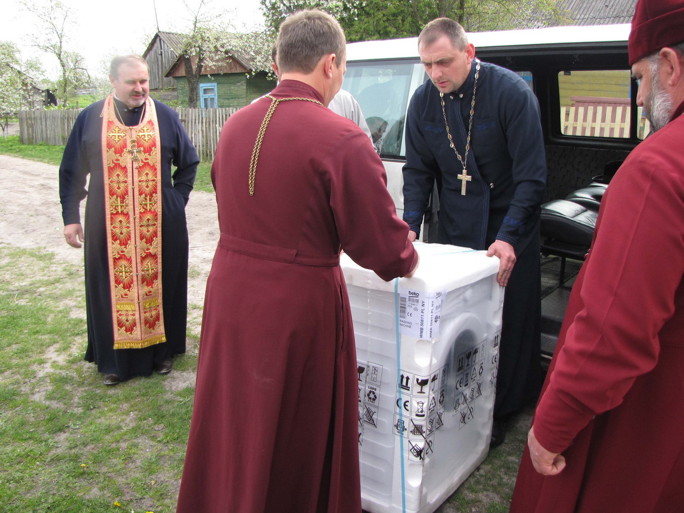 1 травня 2015 р. Панахида по загиблому учасникові АТО Іванові Ващені. Передача пральної машинки для його родини від фонду «Бог багатий милосердям». Світлини з архіву протоієрея Миколи Даньківа.