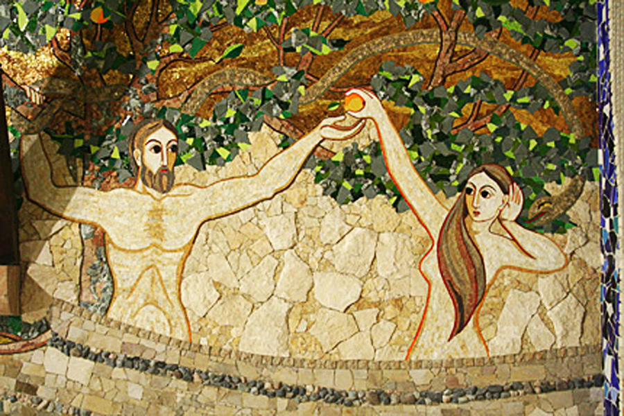 «І розкрилися очі у них обох, і пізнали вони, що нагі, і зшили вони фігове листя, і зробили собі оперезання. І почули голос Господа Бога, Який ходив по раю під час прохолоди дня; і сховався Адам і жінка його від лиця Господа Бога між деревами раю. І покликав Господь Бог Адама і сказав йому: [Адаме], де ти?..