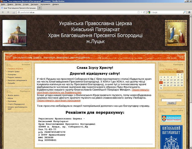 У мережі з’явився сайт луцької парафії Благовіщення Пресвятої Богородиці...