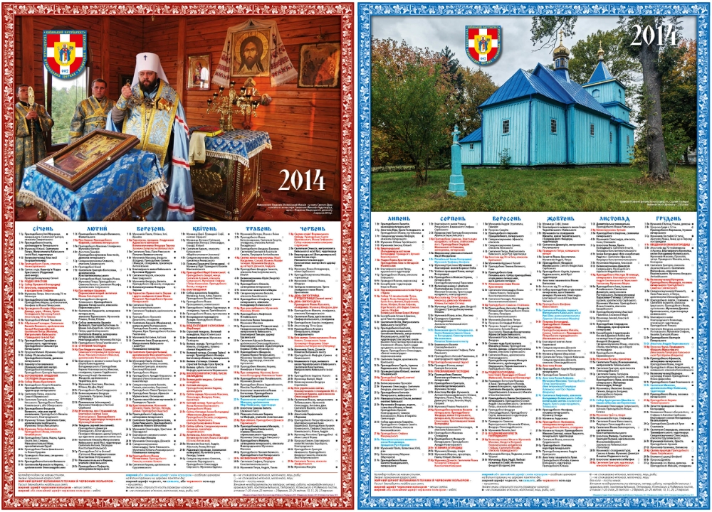 Єпархіальний видавничий відділ «Ключі» випустив настінний двосторонній церковний календар на 2014 р...