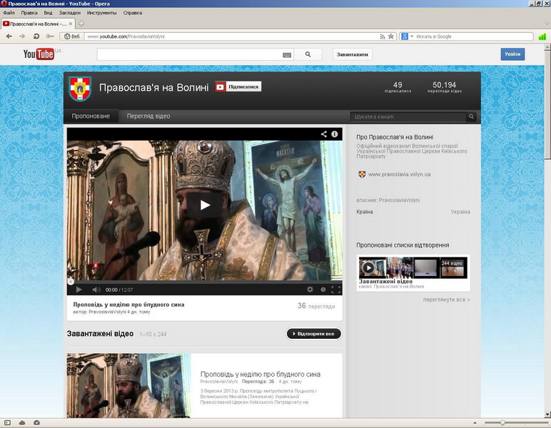 Єпархіальний відеоканал Youtube.com/PravoslaviaVolyni досяг ювілейного показника: 50 000 переглядів...