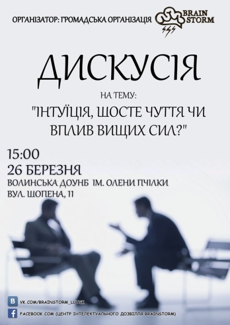 «Інтуїція: шосте чуття чи вплив вищих сил?» – така тема заходу, проведеного 26 березня громадською організацією «Брейн стом» («Мозковий штурм»), до якого долучились викладачі духовної школи...