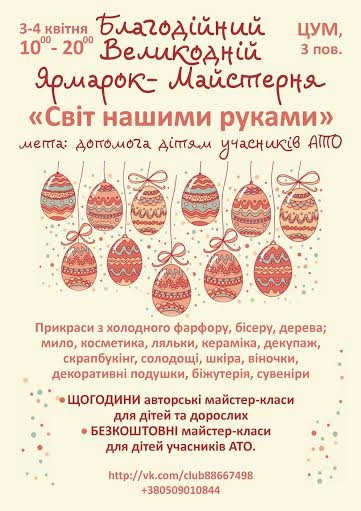 3–4 квітня група вільних майстрів «Світ нашими руками» проводитиме збір коштів дітям луцького прикордонника Сергія Гулюка, який загинув у зоні АТО...