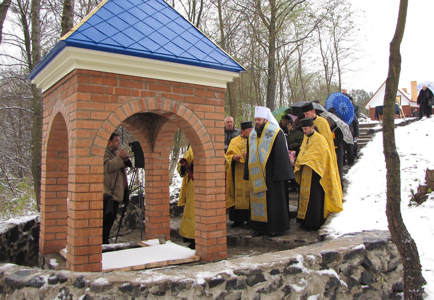 27 жовтня 2012 р. Митрополит Луцький і Волинський Михаїл освячує джерело й капличку над ним на честь Волинської ікони Богоматері в с. Куликовичі Маневицького деканату. Світлина інформаційної служби єпархії