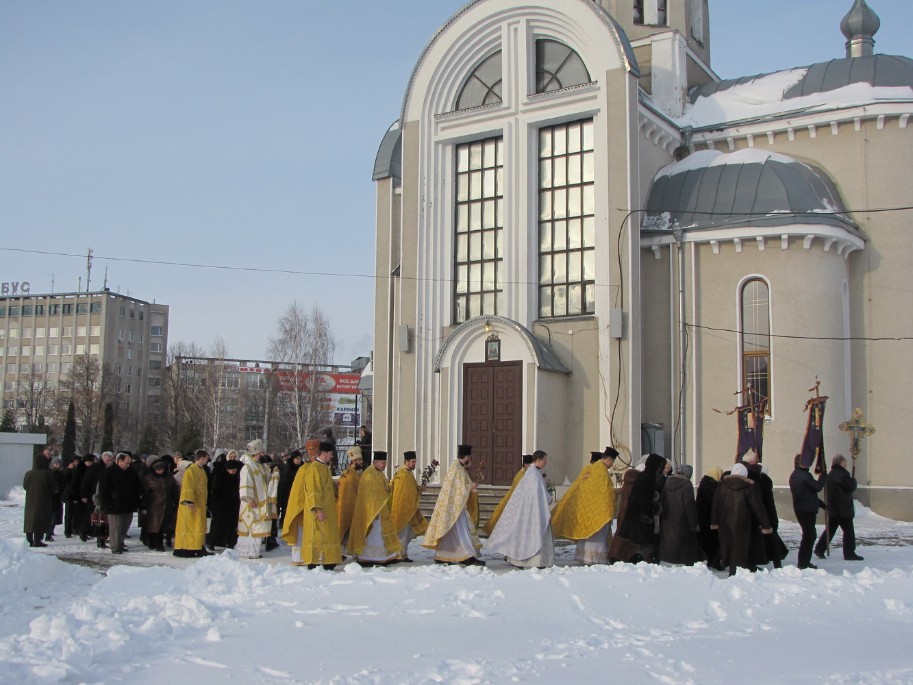 19 грудня 2012 р. Хресний хід навколо храму Святителя Миколая Чудотврця в Луцьку. Світлина інформаційної служби єпархії