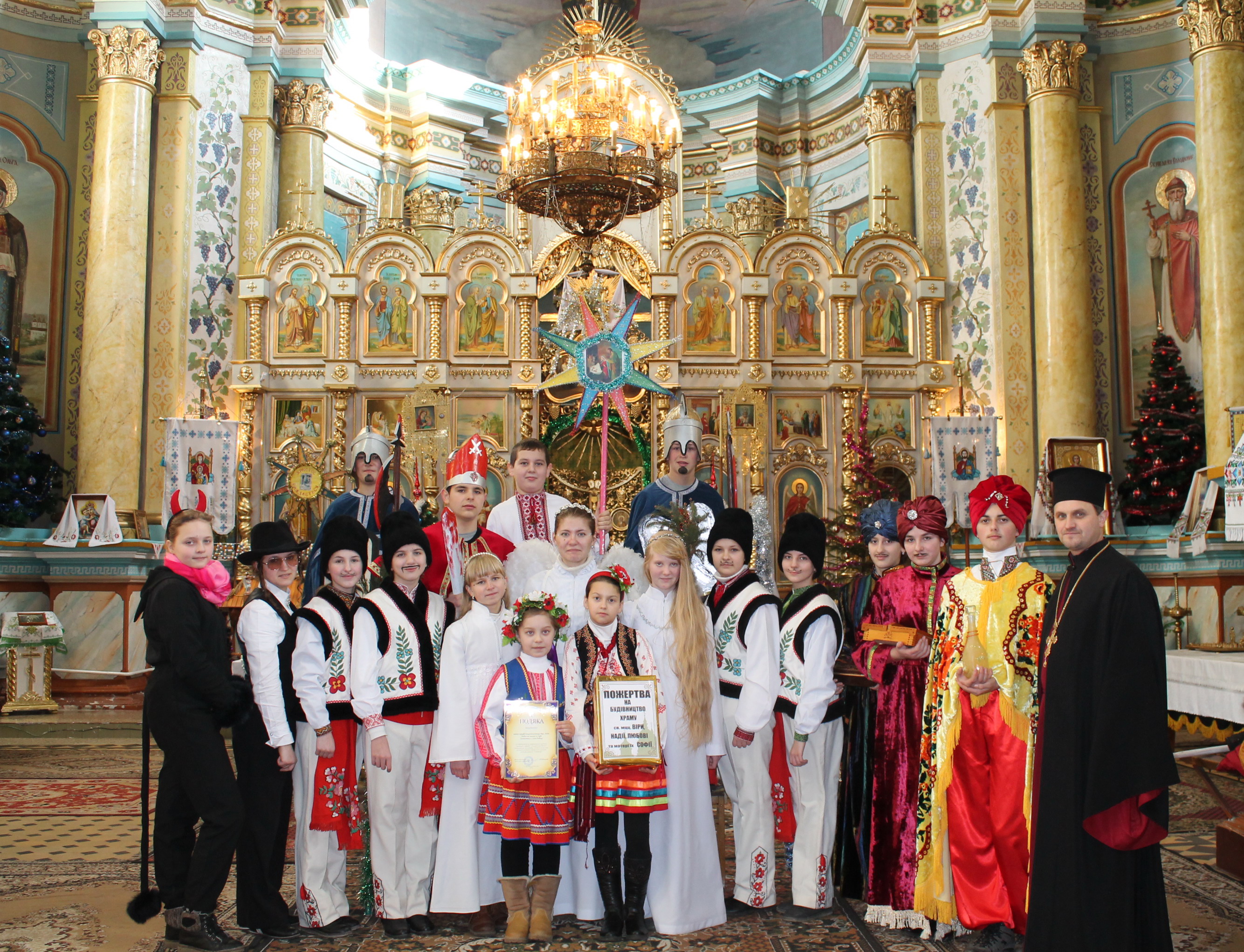 Уперше вихованці молодіжної школи володимирської парафії Мучениць Віри, Надії, Любові та Софії, за сприяння її настоятеля протоієрея Євгена Рябця створивши великий вертеп (20 осіб), відвідали міську раду, заклади освіти й культури, інші установи районного центру, меценатів, які допомагають у будівництві храму.