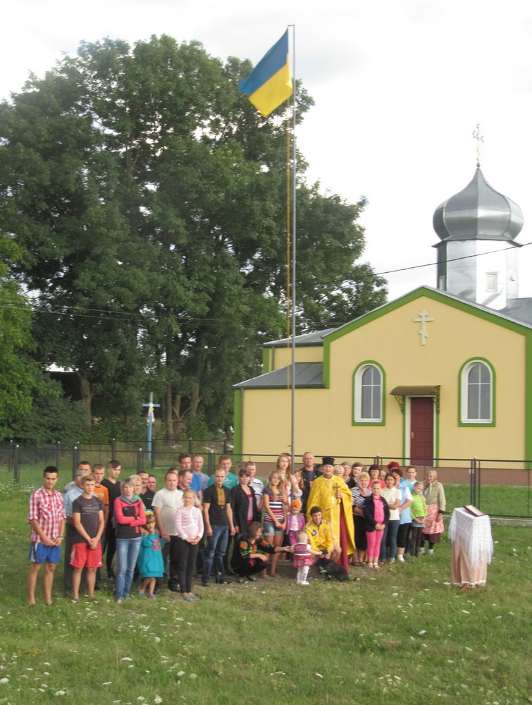 31 липня 2015 р., с. Охнівка Володимирського районного деканату. Освята державного прапора України. Світлини з архіву священика Бориса Наумчука.