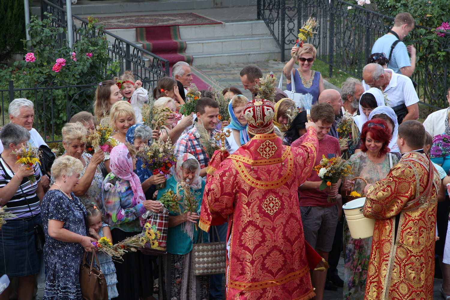 14 серпня 2015 р., Винесення хреста Господнього, Семи мучеників Маккавеєвих. Митрополит Луцький і Волинський Михаїл освячує зілля перед кафедральним собором Святої Трійці. Світлини інформаційної служби єпархії.