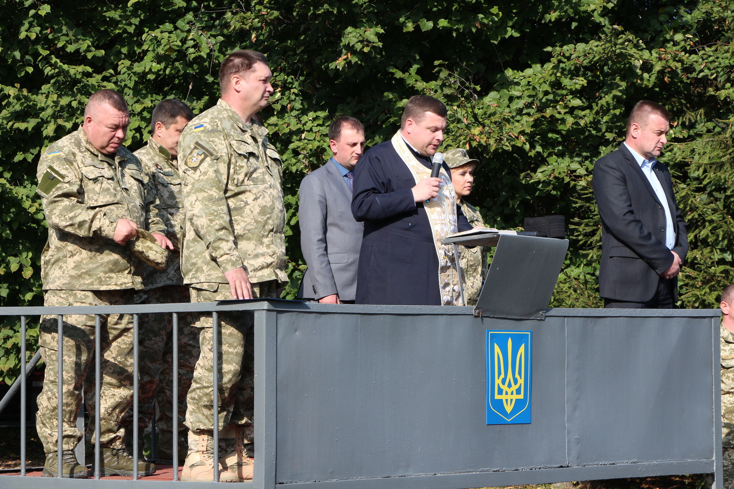 5 жовтня 2015 р. Молебень перед початком усякого доброго діла під час відкриття занять з територіальної оборони на плацу Луцького об’єднаного міського військового комісаріату. Богослужіння очолює і слово виголошує віце-канцлер і старший капелан єпархії протоієрей Олександр Безкоровайний. Світлини інформаційної служби єпархії.