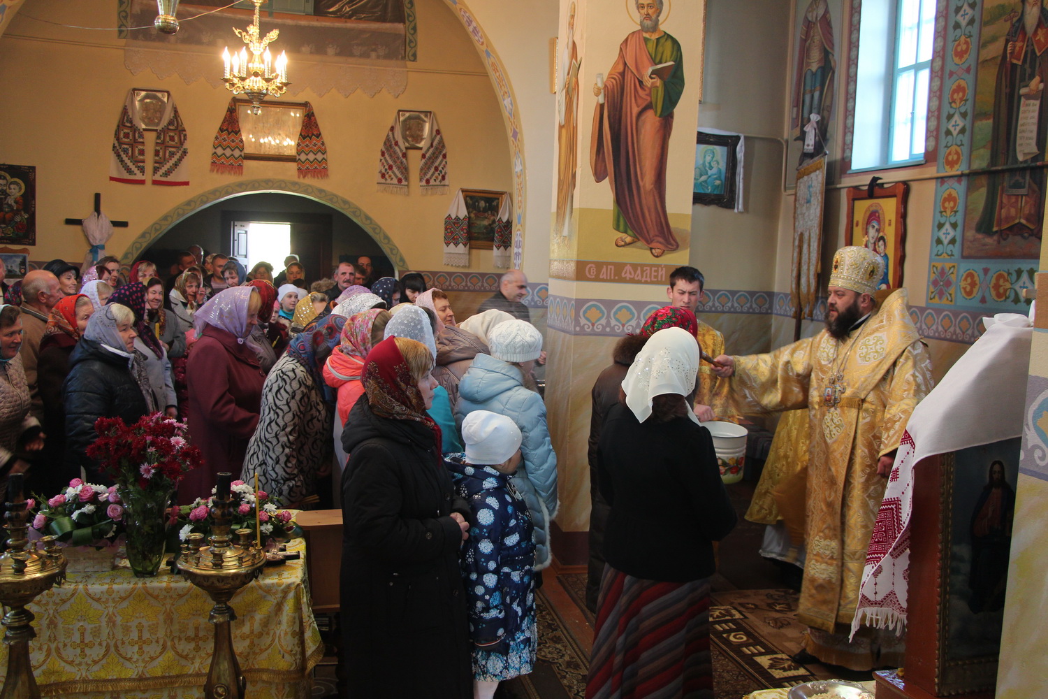 31 жовтня 2015 р. Божественна Літургія в церкві Покрови Пресвятої Богородиці в с. Овадно Володимирського районного деканату, освята нового престолу та розписів. Очолює митрополит Луцький і Волинський Михаїл. Світлини інформаційної служби єпархії.