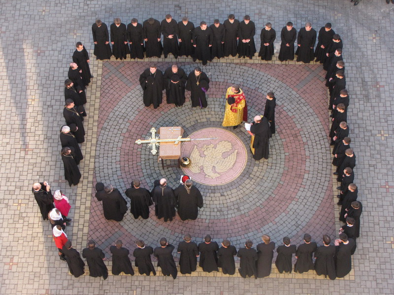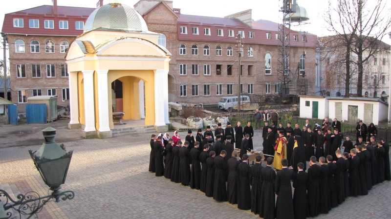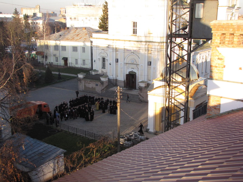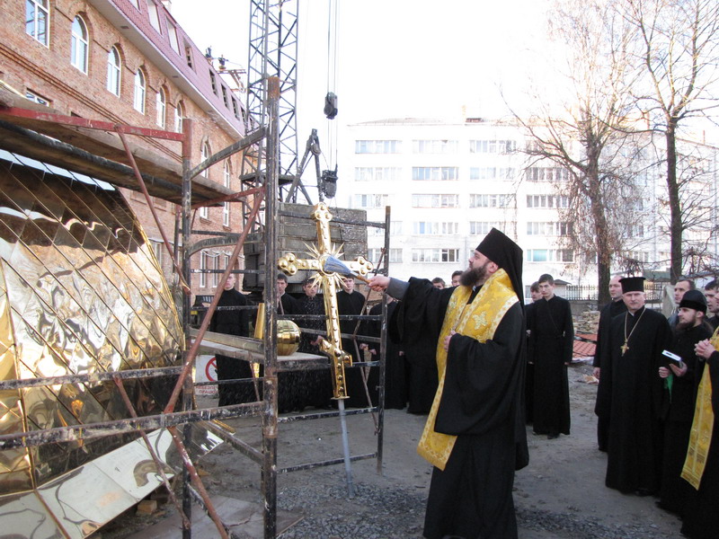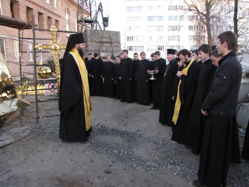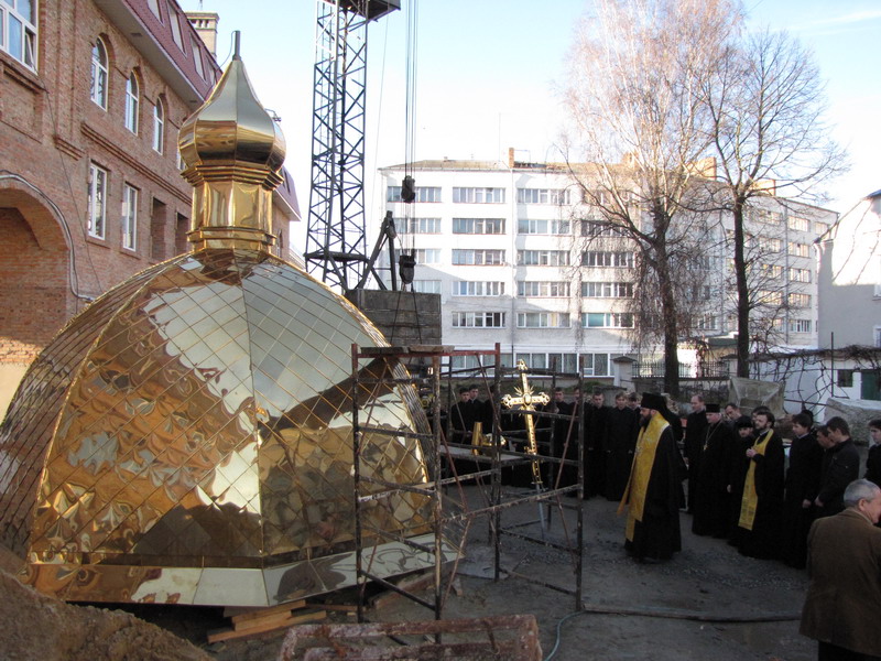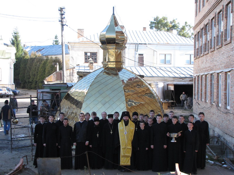 15 листопада 2010 р. архієпископ Луцький і Волинський Михаїл освятив купол і надбанний хрест для храму Всіх волинських святих, що в новому корпусі Волинської духовної семінарії. Світлина інформаційної служби єпархії.