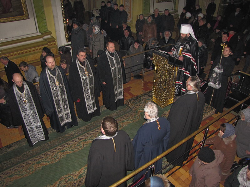 1 березня 2012 р. Митрополит Луцький і Волинський Михаїл читає канон преподобного Андрія Критського в кафедральному соборі Святої Трійці. Світлини інформаційної служби єпархії.