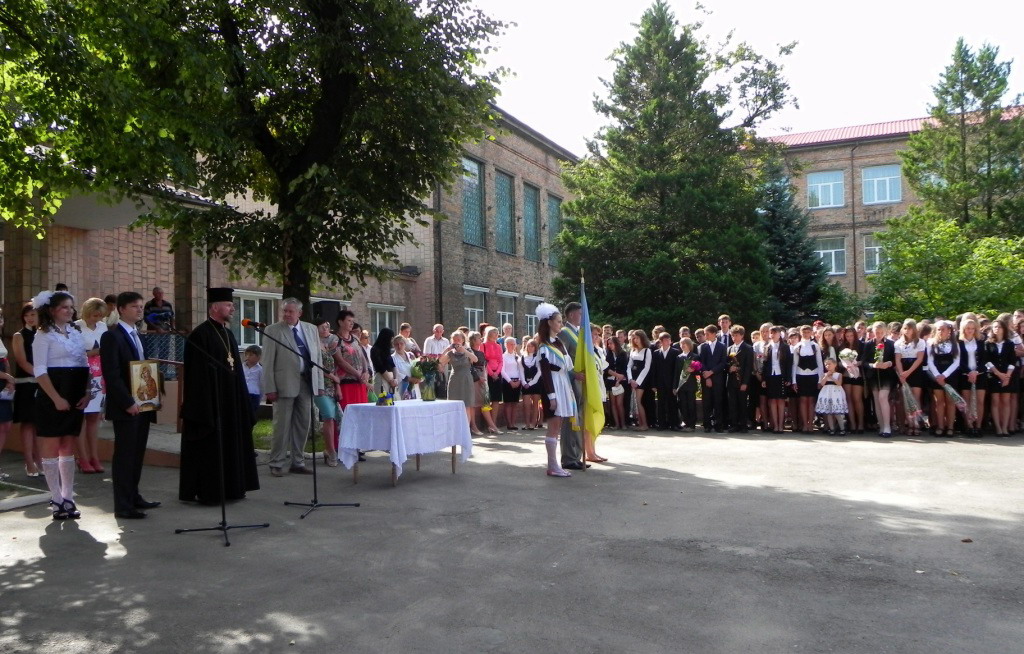 1 вересня 2012 р. Нововолинський декан протоієрей Стефан Фульмес благословляє початок навчального року в місцевому ліцеї-інтернаті. Світлини з архіву священика.