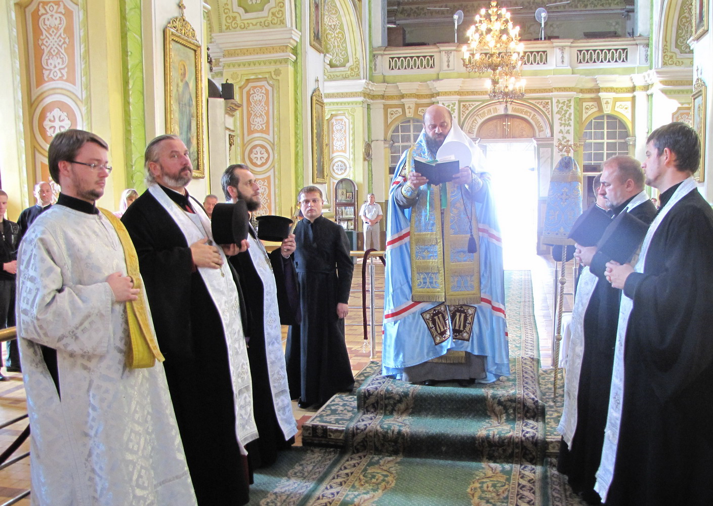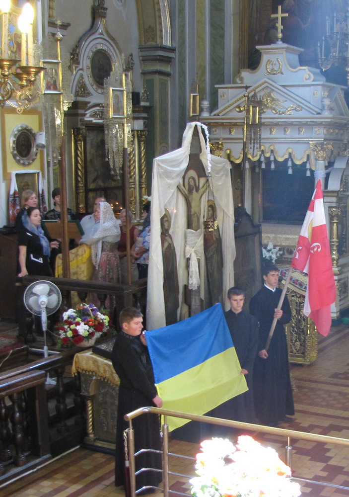 23 серпня 2012 р. З нагоди Дня Прапора митрополит Луцький і Волинський Михаїл у кафедральному соборі Святої Трійці освячує прапори – єпархіальні, державний і Євросоюзу, які після цього замайоріли на соборному майдані, перед духовною консисторією. Світлини інформаційної служби єпархії.