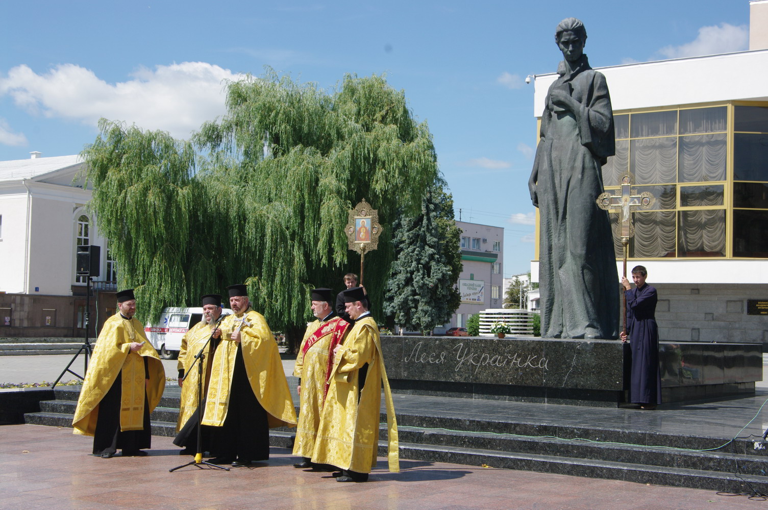 1 серпня 2013 р. Заупокійна літія по Лесі Українці в центрі Луцька. Богослужіння очолює староста кафедрального собору Святої Трійці протоієрей Володимир Подолець. Світлини Ігоря Сацика.