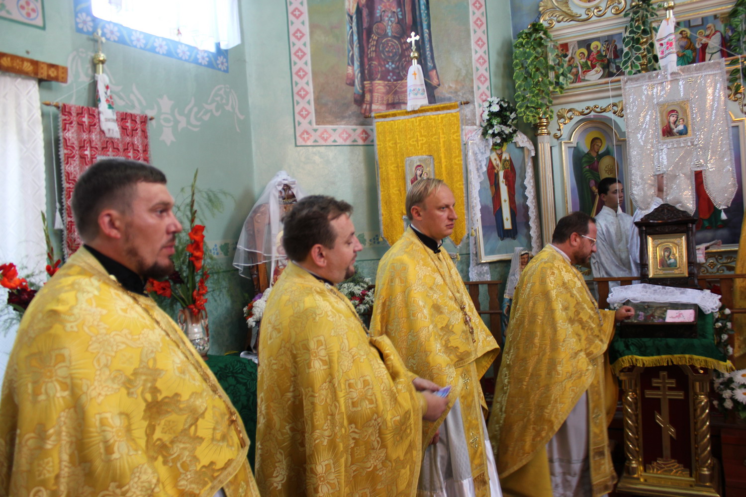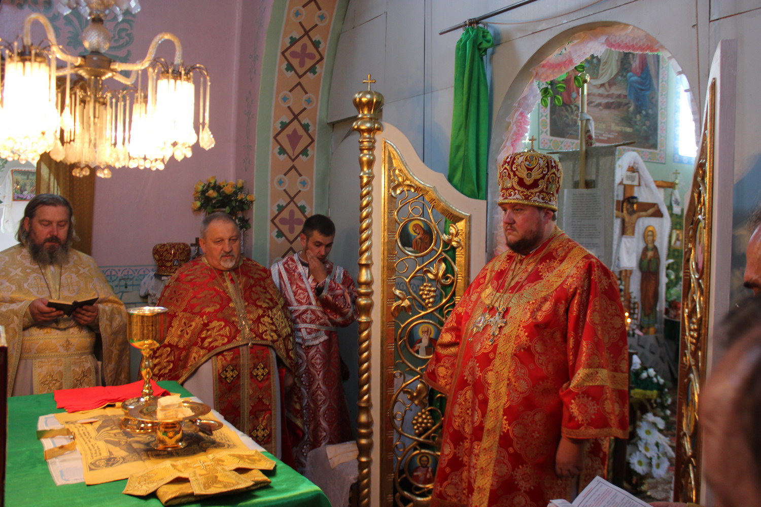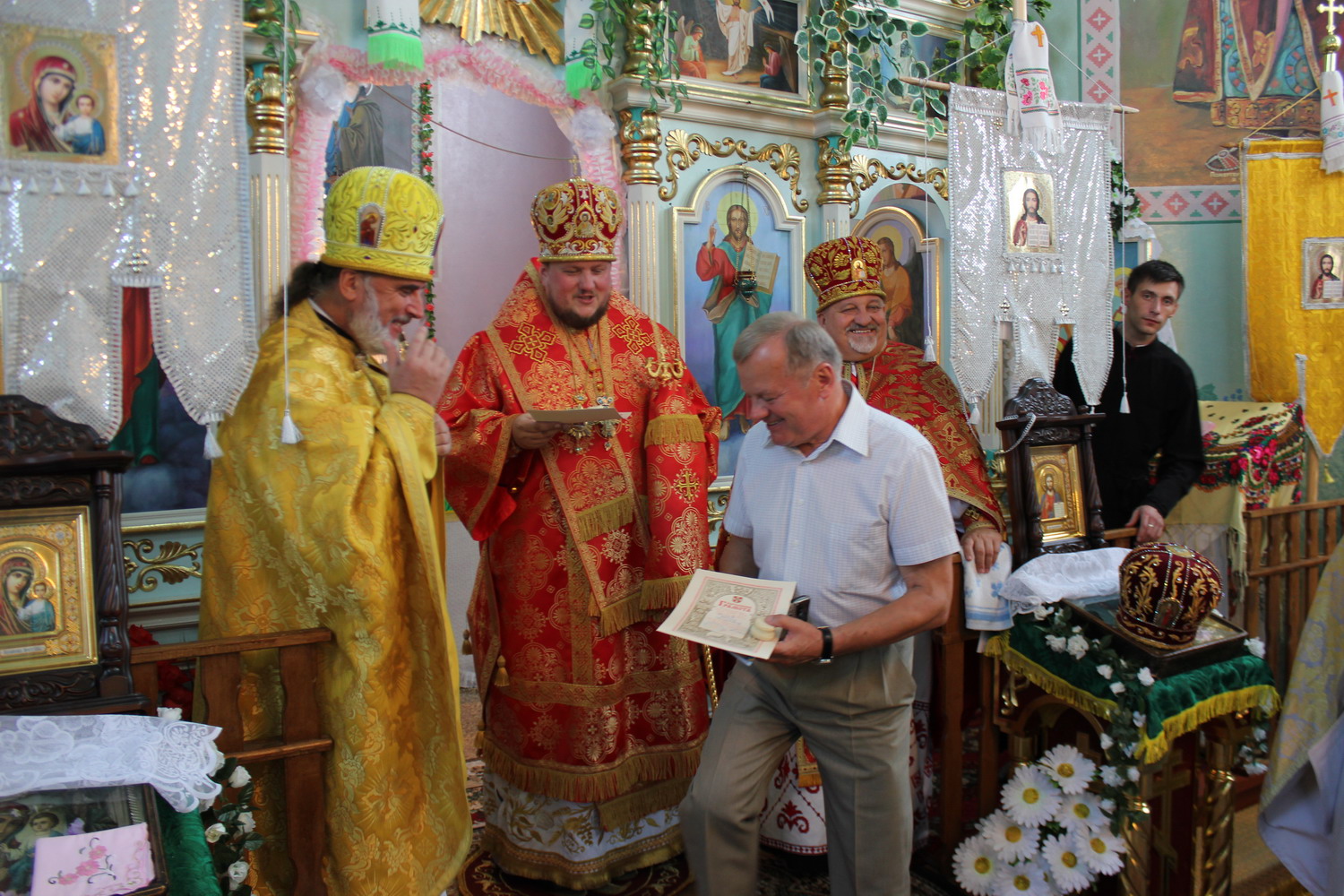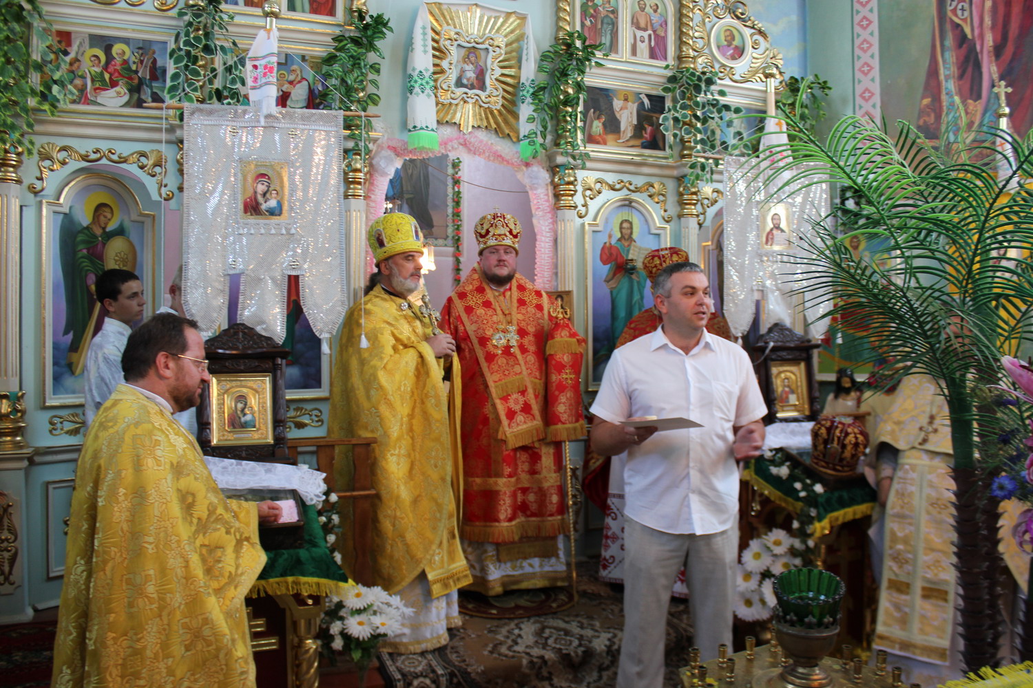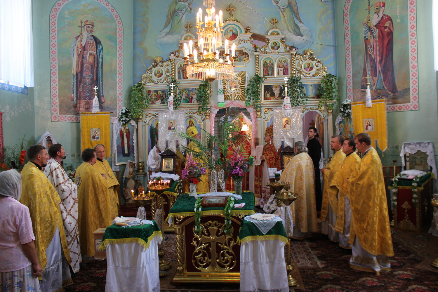 6 серпня 2013 р. Божественна Літургія у храмі Успіння Пресвятої Богородиці с. Стенжаричі Володимирського районного деканату з нагоди дня ангела і 20-річчя священичого служіння настоятеля протоієрея Бориса Гідзінського. Відправу очолює єпископ Володимир-Волинський Матфей. Світлини з архіву владики.