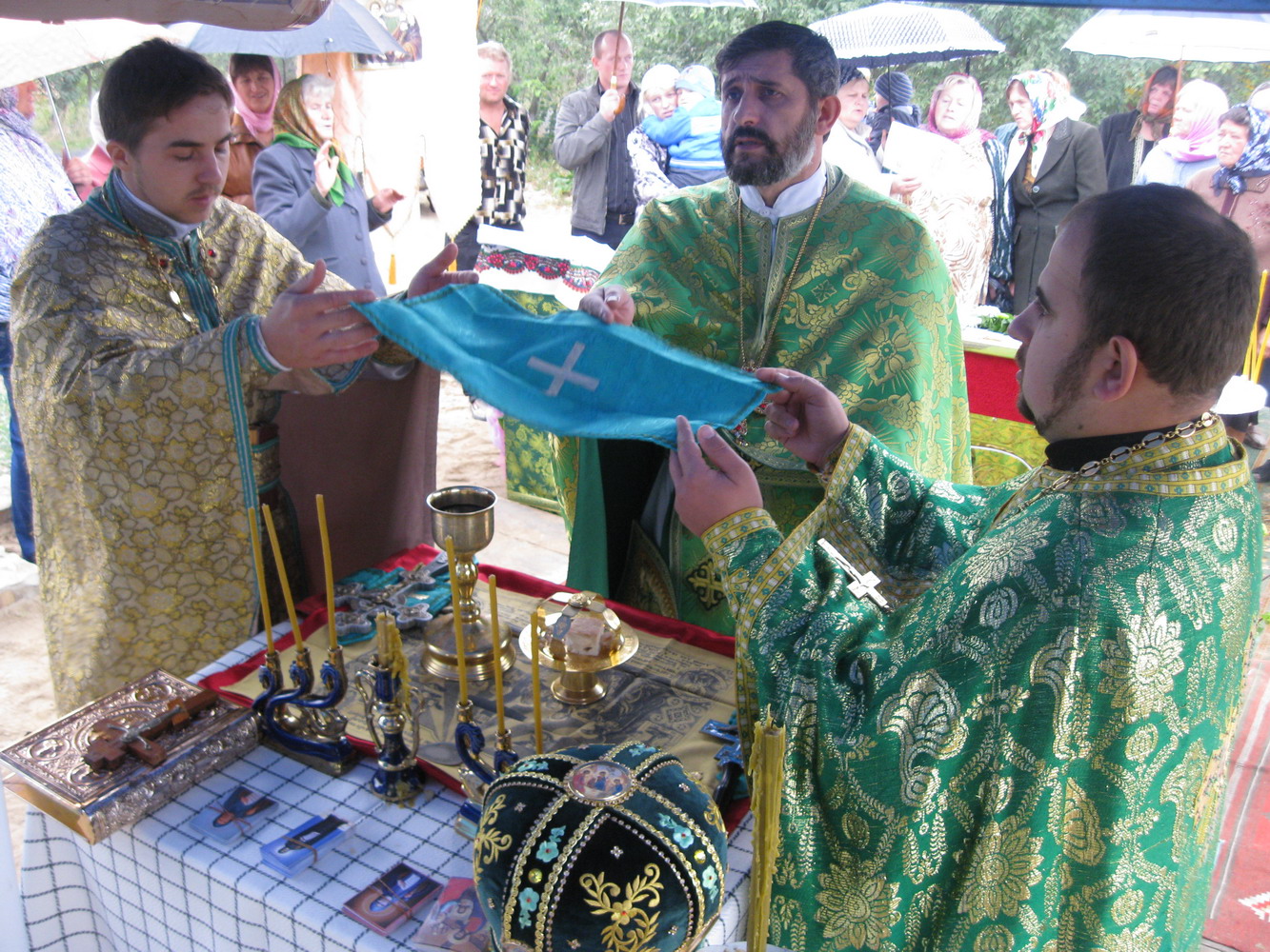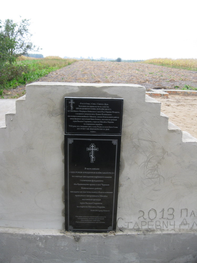 10 вересня 2013 р. Божественна Літургія і чин освяти наріжного каменю майбутнього храму Преподобного Іова Почаївського в с. Черкаси Ковельського районного деканату. Богослужіння очолює декан протоієрей Іван Бонис. Світлини з архіву священика Матвія Олійника.