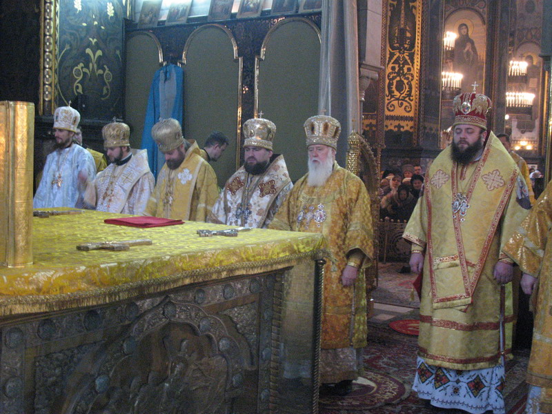 1 лютого 2009 р. У вівтарі Володимирського собору Києва під час Божественної Літургії, за якою Патріарх Філарет, архієпископ Михаїл та інші ієрархи висвятили архімандрита Марка (Левківа) (справа, у білих ризах) на єпископа Кіровоградського і Голованівського. Світлина ієромонаха Якова (Мільяна)