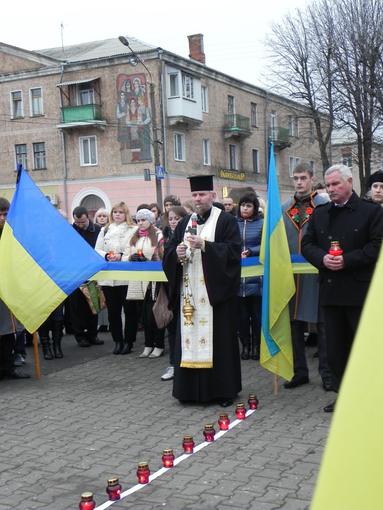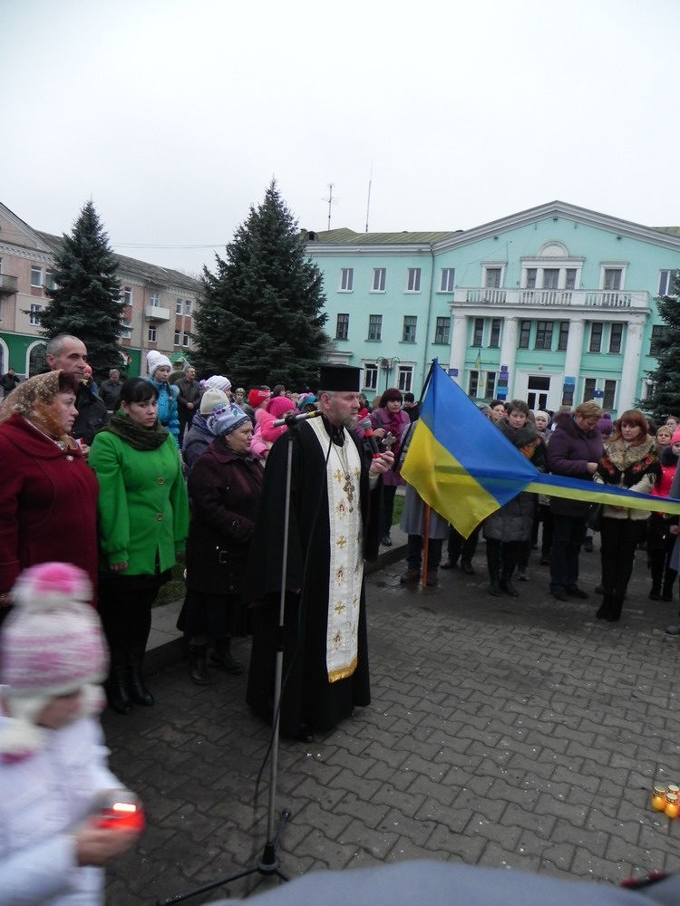23 листопада 2013 р. Мітинг-реквієм на майдані Незалежності у Нововолинську з нагоди 80-ї річниці Голодомору. Очолює декан протоієрей Стефан Фульмес. Світлини з архіву священика.