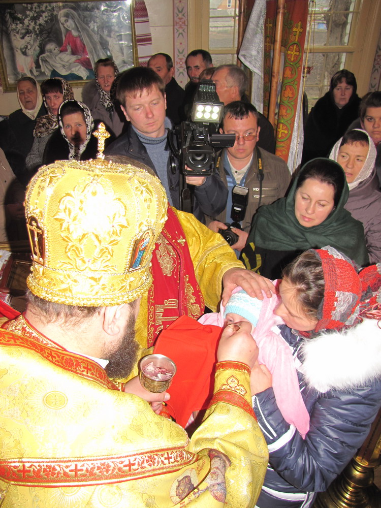 1 грудня 2013 р. Божественна Літургія у храмі Успіння Пресвятої Богородиці в с. Радовичі Іваничівського деканату з нагоди 20-річчя освяти цієї церкви (26 листопада). Очолює митрополит Луцький і Волинський Михаїл. Світлини інформаційної служби єпархії.