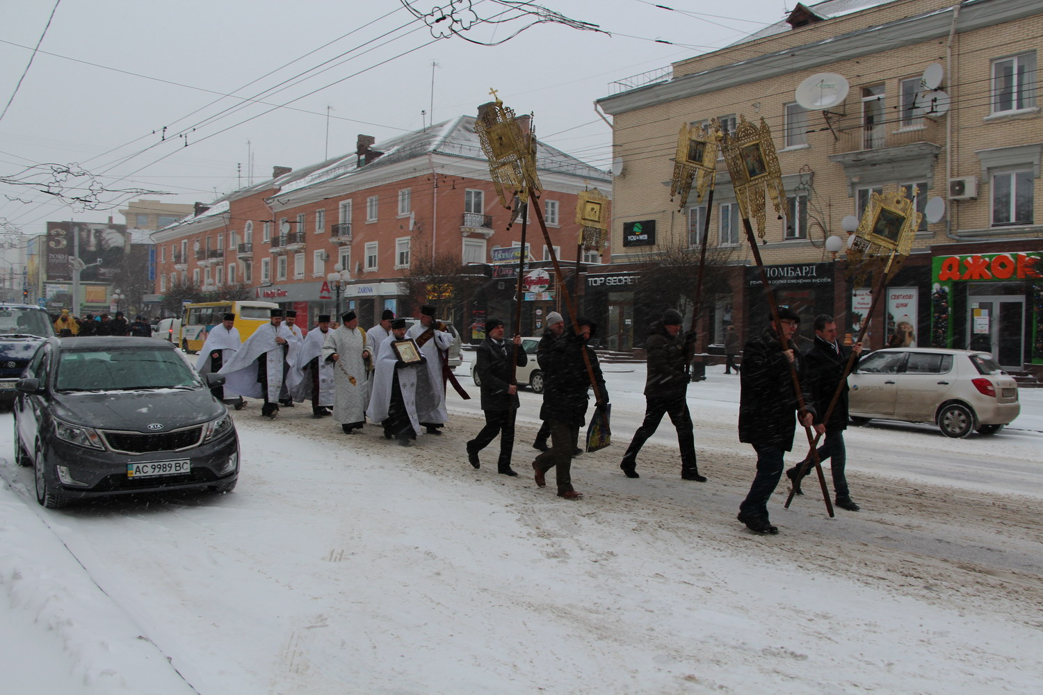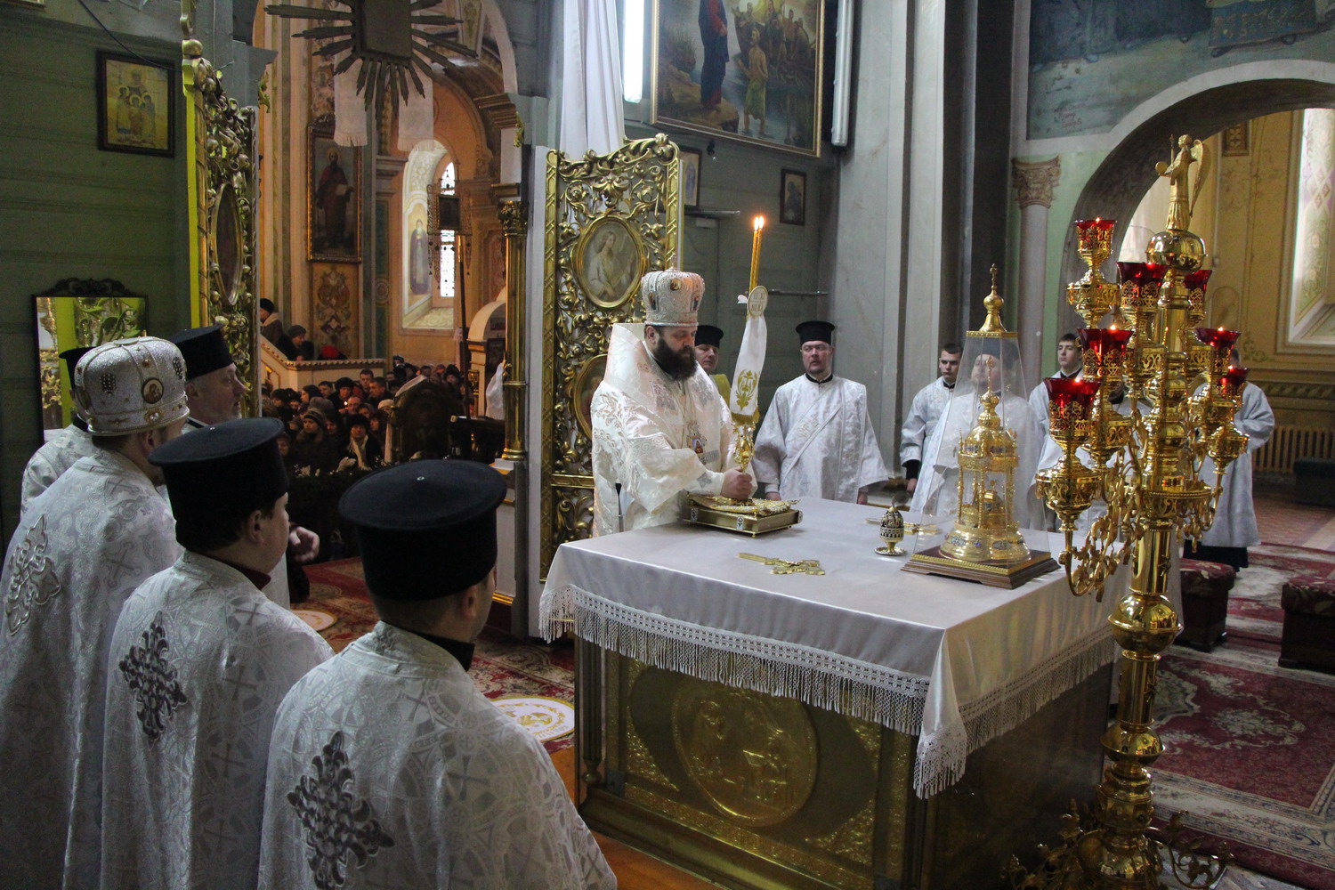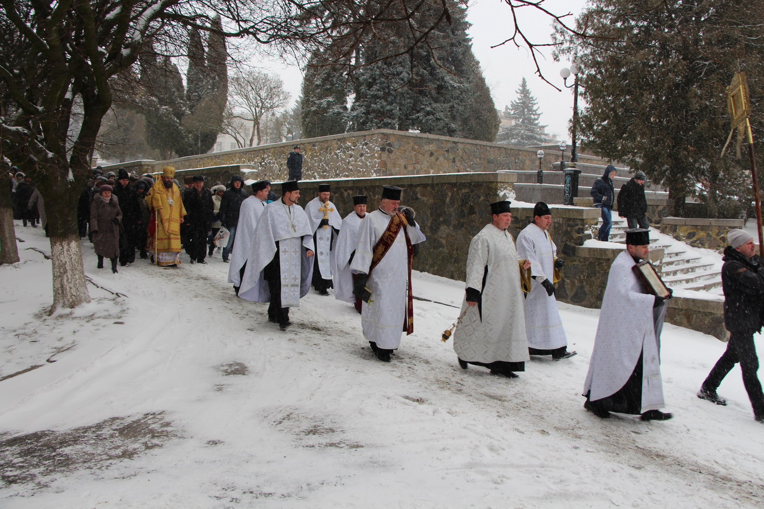 19 січня 2014 р. Божественнна Літургія у кафедральному соборі Святої Трійці, хресний хід та велике водосвяття у день Богоявлення на річці Стир (район центрального парку в Луцьку). Очолює митрополит Луцький і Волинський Михаїл. Світлини інформаційної служби єпархії.