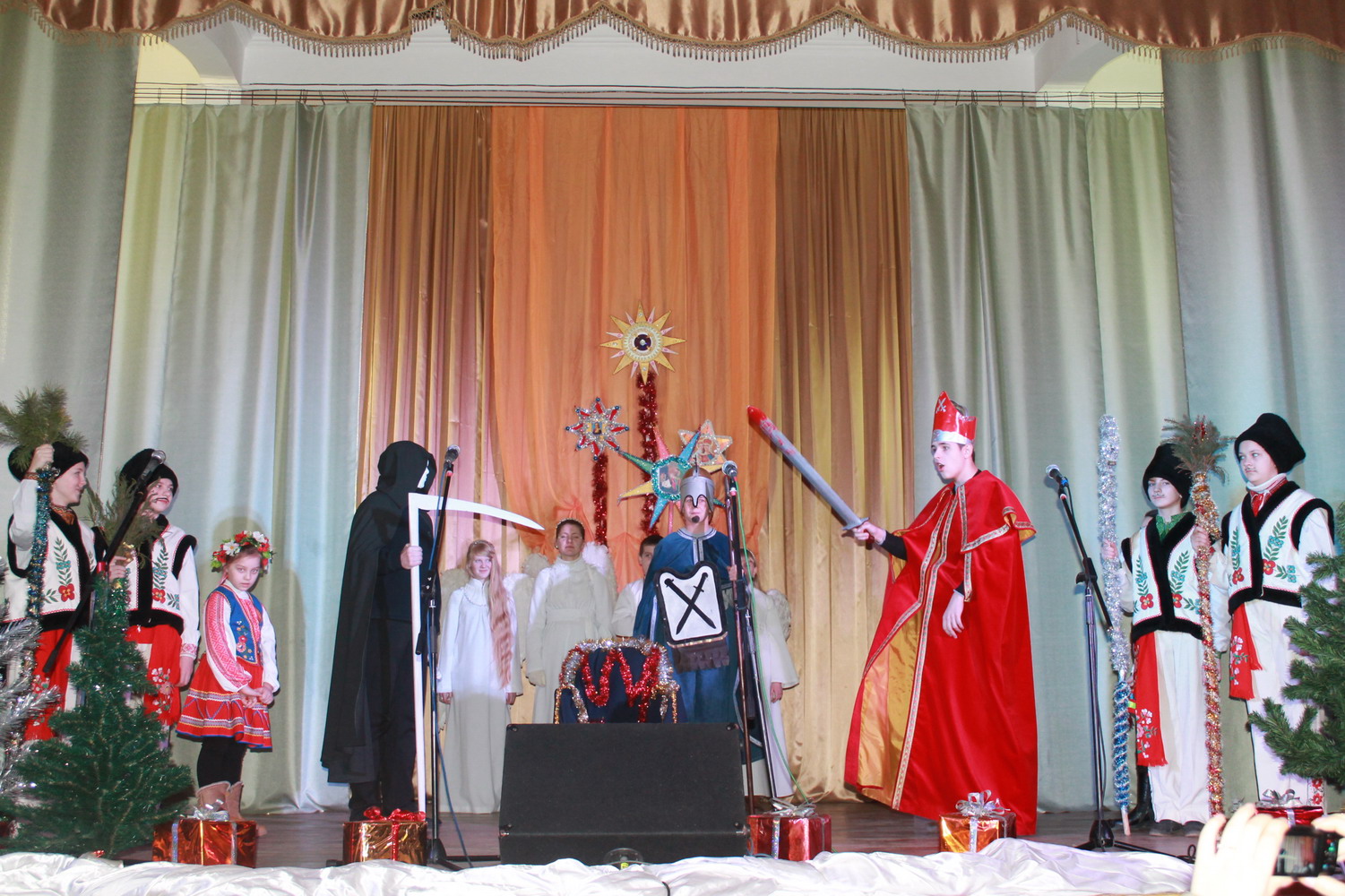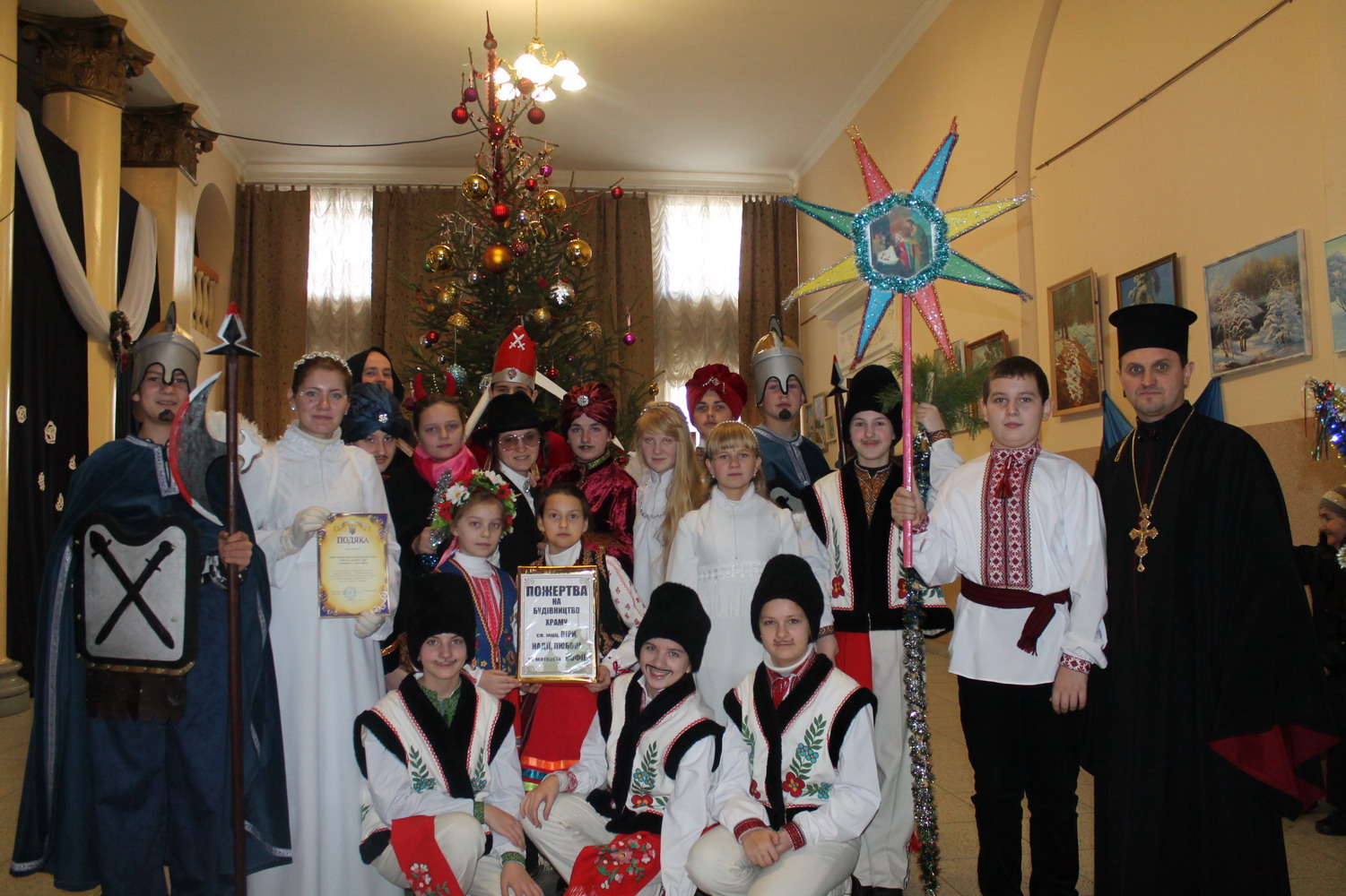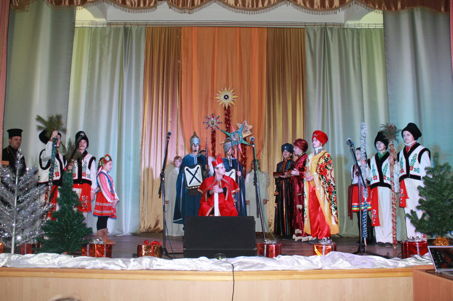 13 січня 2014 р. Вертеп молодіжної школи володимирської парафії Мучениць Віри, Надії, Любові та Софії (директор протоієрей Євген Рябець) під час концерту «З колядою в серці» в Культурно-мистецькому центрі ім. Т. Шевченка у Володимирі. Світлини Іоанни Рябець.